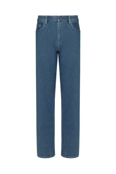 Джинсы классического кроя regular fit сшили из хлопкового денима. Модель с пятью карманами дополнена молнией с долговечным палладиевым покрытием. Сзади модель украсили замшевой брендированной нашивкой и крупной вышивкой в тон.