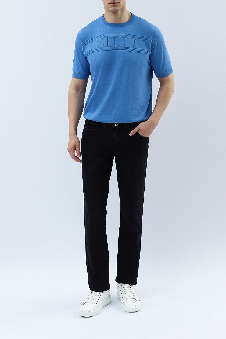 Джинсы прямого кроя из плотного тянущегося хлопка идеально садятся по фигуре и сохраняют свободу движений. Фирменный логотип на поясе и пуговица с рельефным львом выполнены из недрагоценного металла, покрытого нетускнеющим палладием. Вышитая эмблема ZILLI на заднем кармане создает фирменный акцент.