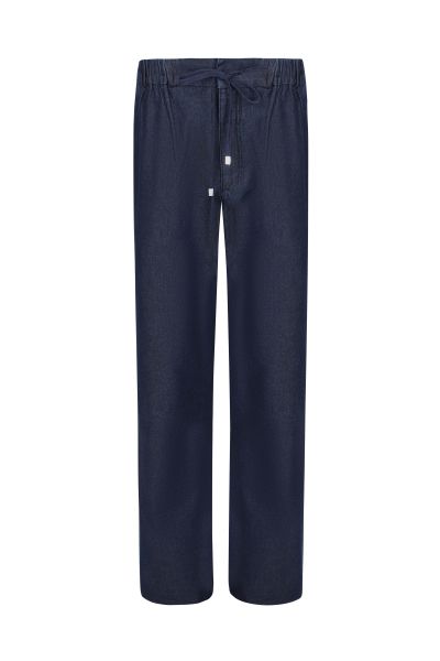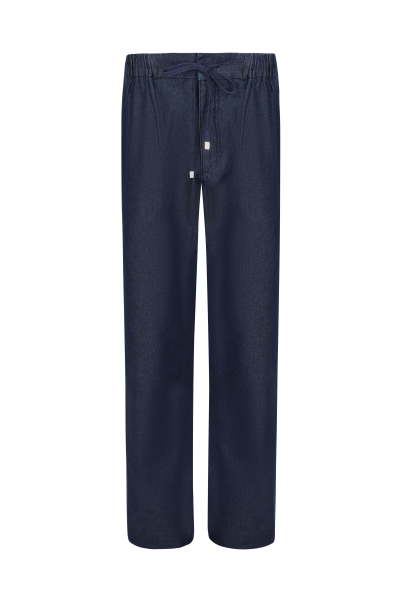Джинсы прекрасно подойдут для повседневного городского образа. Модель прямого кроя с эластичным поясом на кулиске и застежкой на молнию.