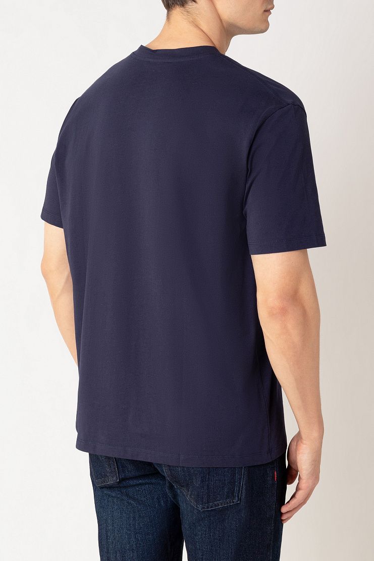 Футболку прямого кроя сшили из мягкого хлопка. Модель украшена контрастным логотипом спереди. Такая футболка может стать основой повседневных образов с джинсами или шортами.