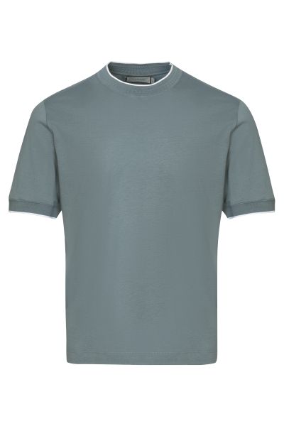 Футболка прямого кроя выполнена из гладкого, дышащего и приятного на ощупь джерси на основе хлопка и лиоцелла. Горловину и манжеты подчеркнули контрастной окантовкой. Благодаря минималистичному декору футболка легко впишется в повседневный образ.