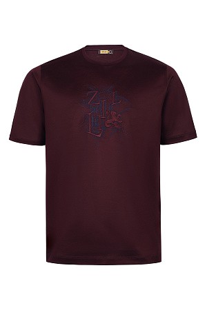 Футболку с круглой горловиной сшили из тонкого блестящего шелка, который почти не ощущается на теле. Такая лаконичная и комфортная модель легко найдет место в базовом гардеробе.