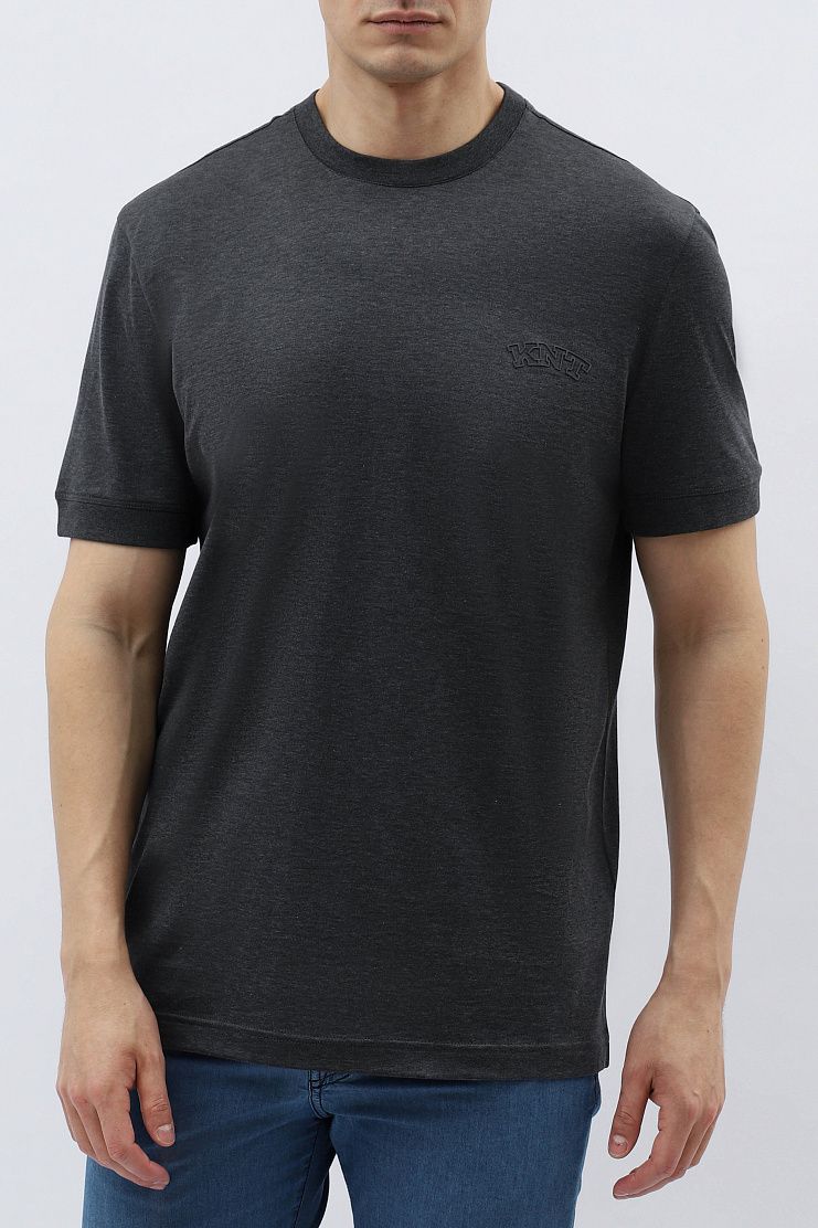 Футболка из меланжевой ткани идеально подойдет для уличного и спортивного стиля. Модель свободного кроя имеет короткие рукава, круглый вырез и логотип KNT на груди.