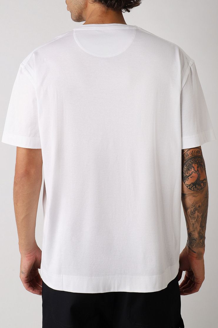 Футболка выполнена из натурального хлопка. Такой материал отлично впитывает влагу и пропускает воздух, гарантируя комфорт в любую погоду. Базовая модель идеально подходит для многослойных аутфитов с рубашками или жилетами. Узнаваемая нашивка с логотипом завершает образ.