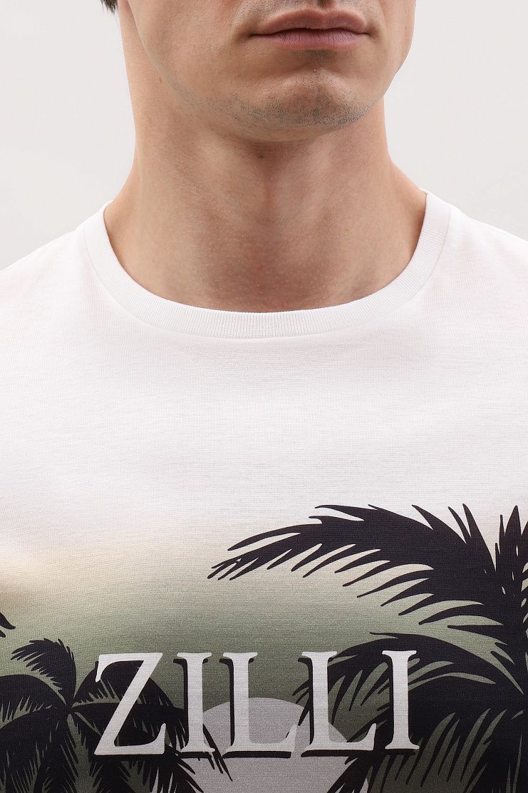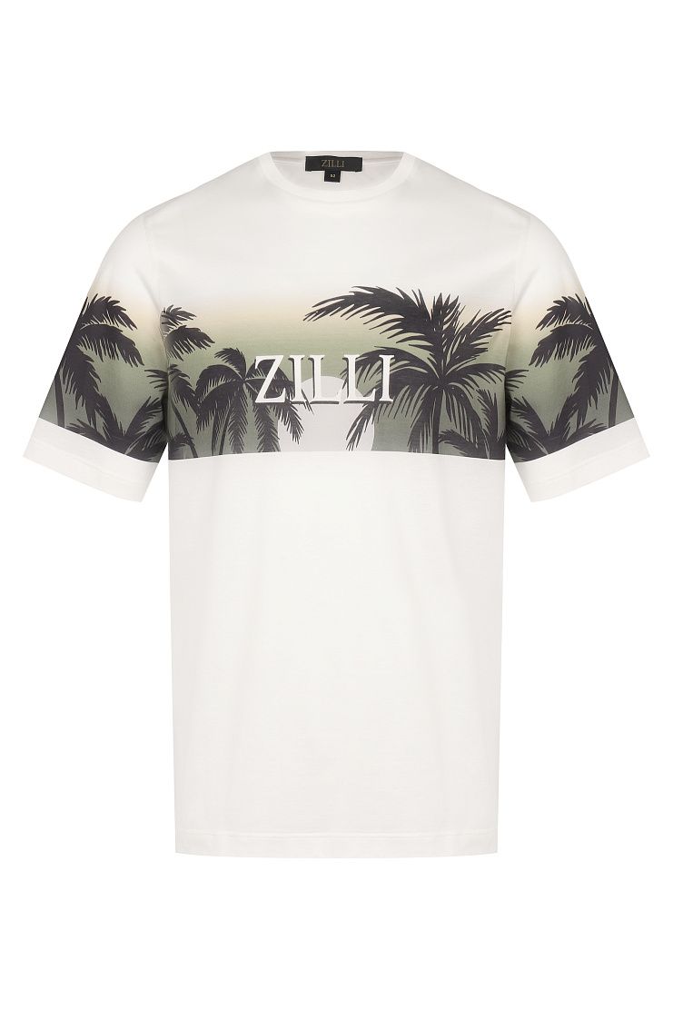 Футболка с принтом и логотипом Zilli. Модель свободного кроя имеет короткие рукава и круглый вырез.