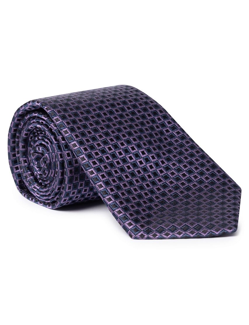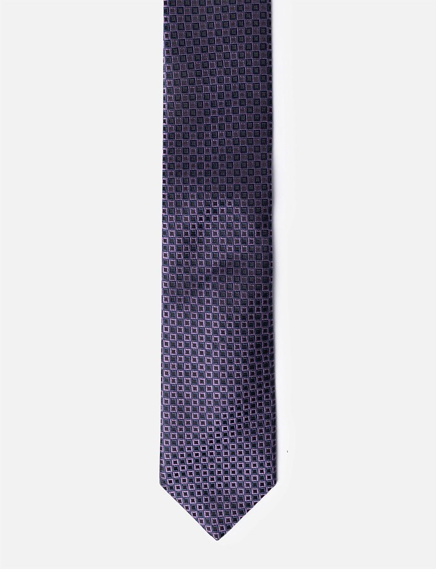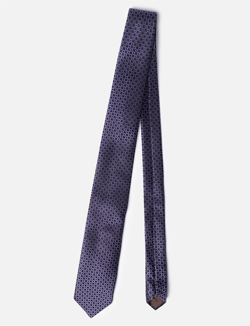 Галстук средней ширины выполнили из гладкого жаккардового шелка. Аксессуар дополнили подкладом для большей плотности и эластичным ручным швом сзади.