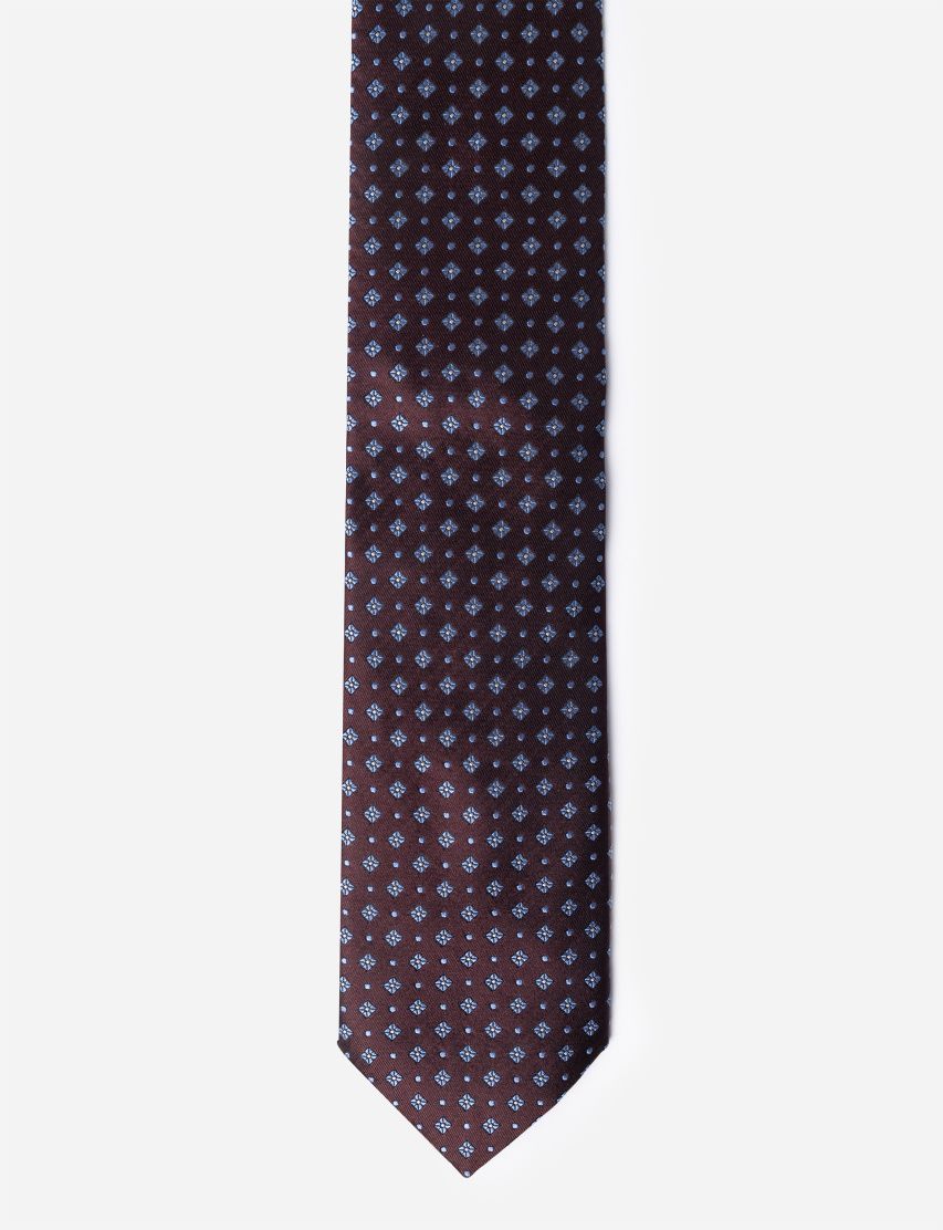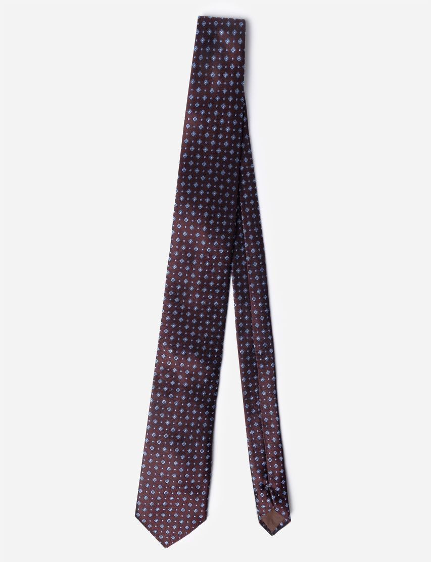 Для пошива галстука средней ширины использовали гладкий шелк с жаккардовым цветочным узором. Благодаря эластичному ручному шву сзади аксессуар легко драпируется, держит узел и не перекручивается.