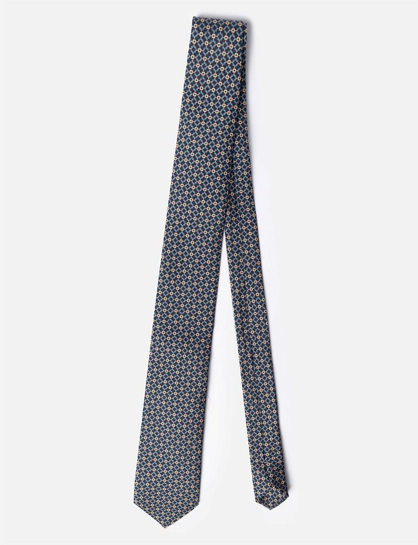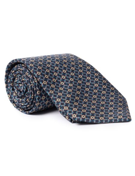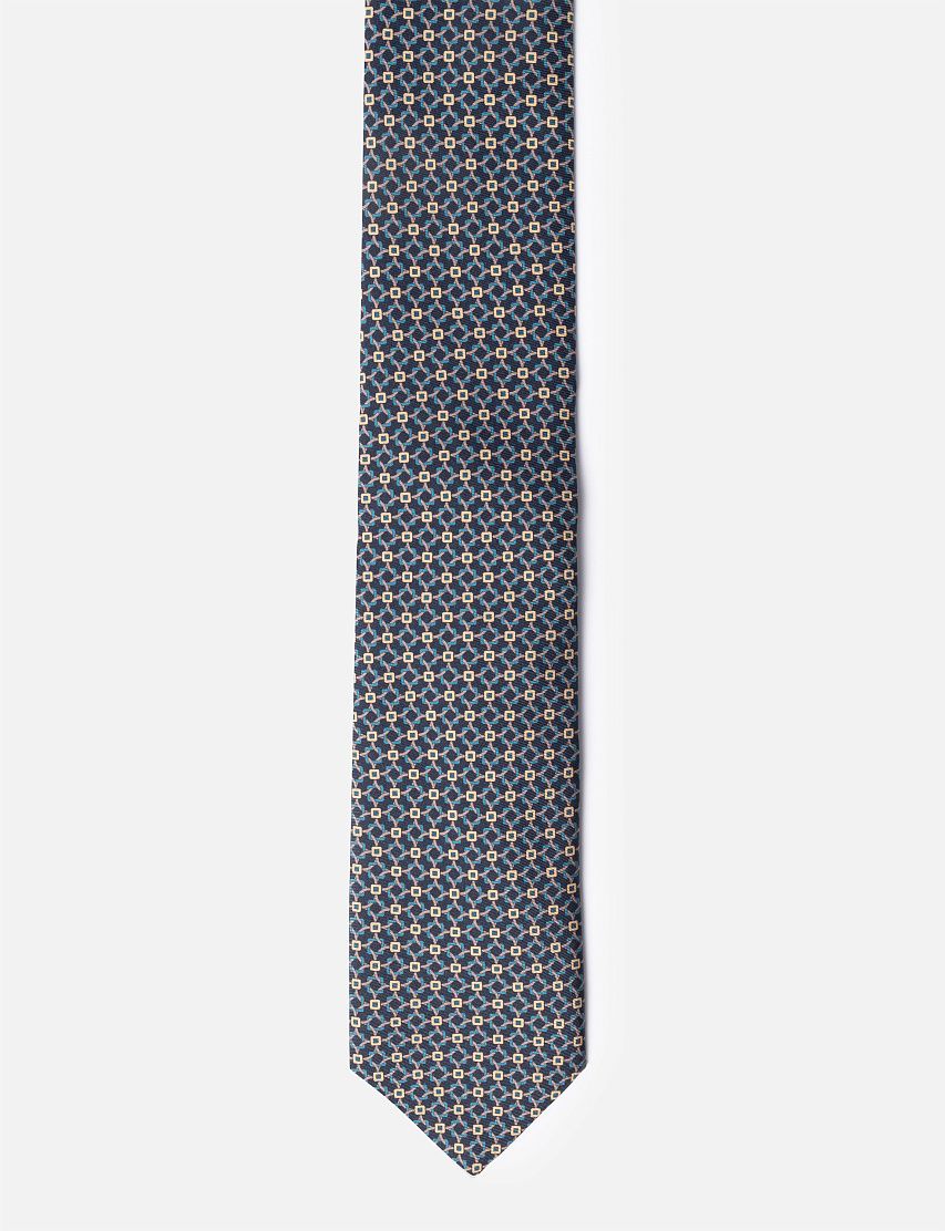 Галстук с жаккардовым геометрическим узором сшили из микса льна и шелка.