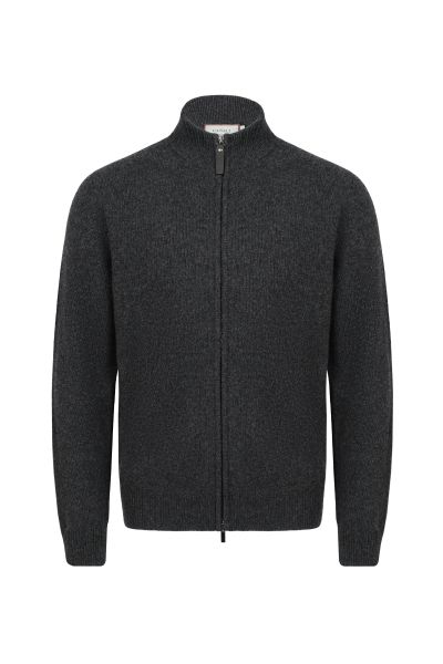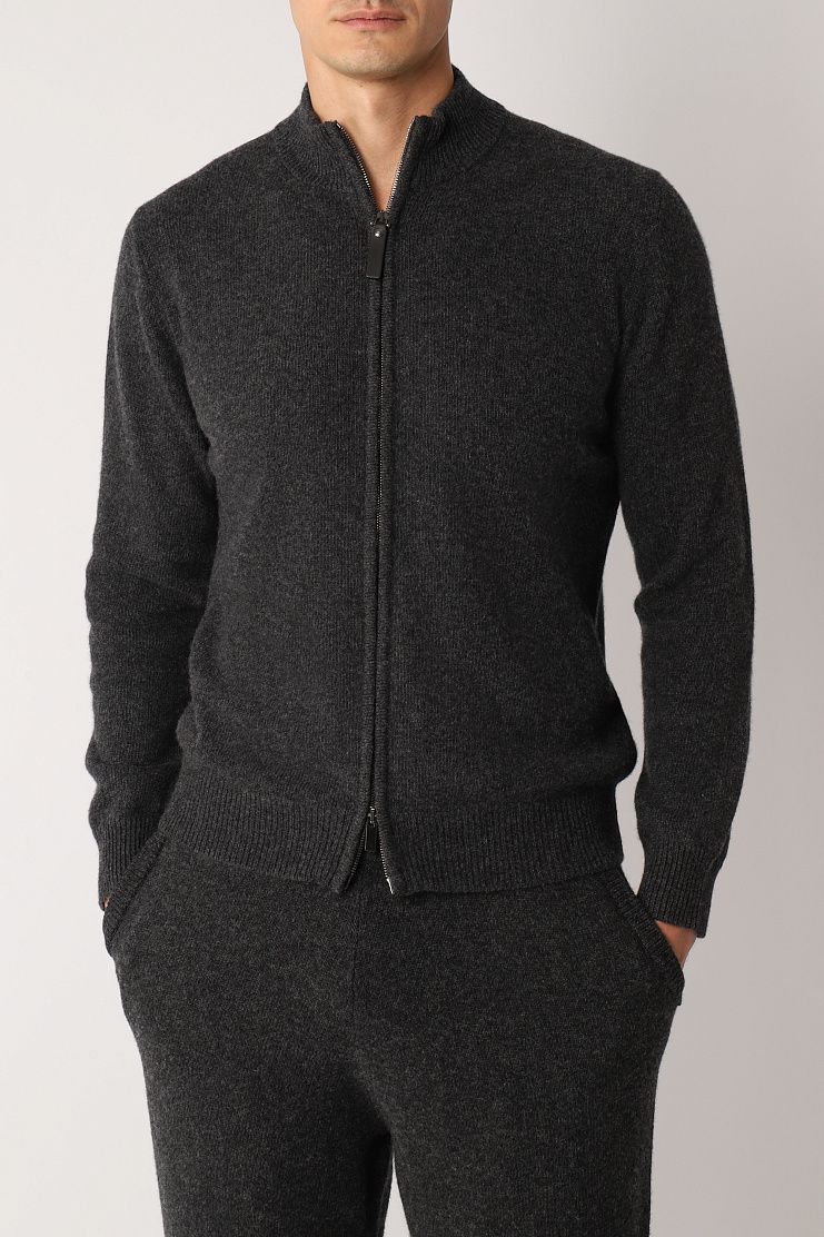 Кардиган с воротником-стойкой выполнен из мягкой шерсти с добавлением кашемира. Такой материал отлично сохраняет тепло и не скатывается. Крой не сковывает движения, модель комфортно садится по фигуре. Кардиган застегивается на двухзамковую молнию.