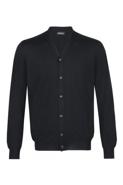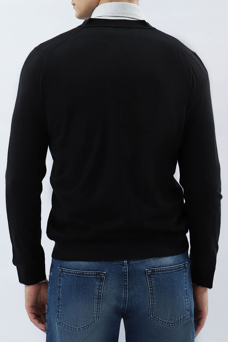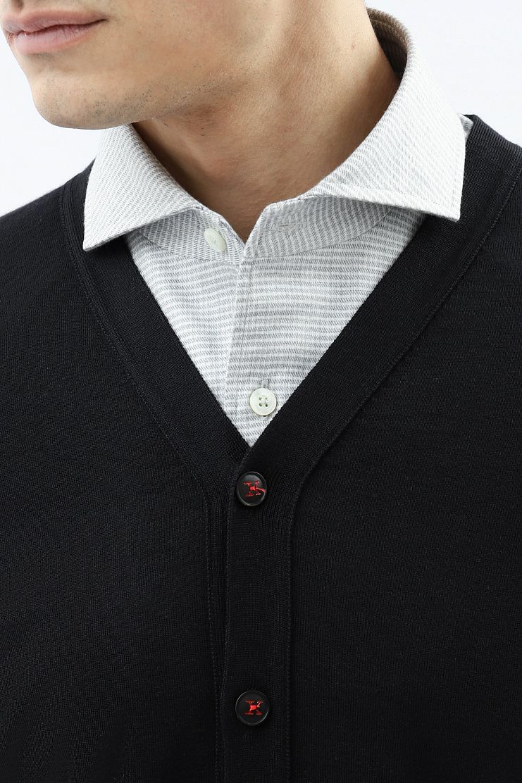 Кардиган с фирменными пуговицами в сочетании с рубашкой прекрасно подойдет для образа в стиле smart-casual. Модель свободного силуэта с V-образным вырезом.