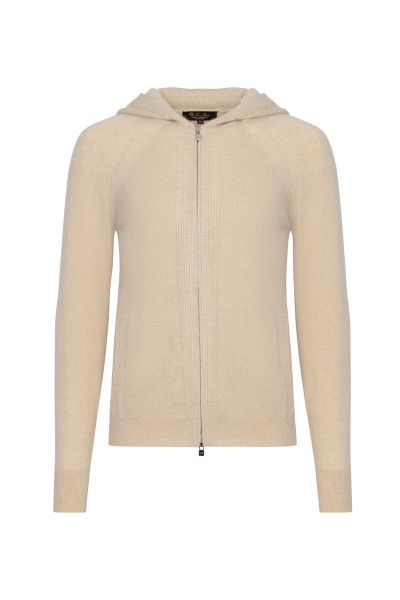 Кардиган с капюшоном и рукавами реглан связали из шелковистого baby-кашемира, для производства которого вручную вычесывают пух из подшерстка горных коз. Модель с боковыми карманами украшена ребристым узором и застегивается на встречную молнию. В таком кардигане будет тепло и комфортно в прохладную погоду.