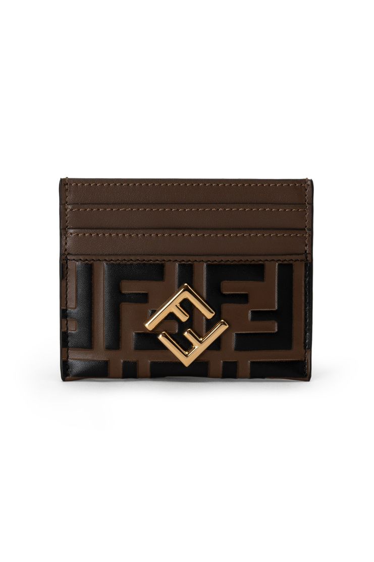 Картхолдер выполнен из гладкой телячьей кожи с фирменным тисненым узором FF. Модель с шестью прорезями для пластиковых карт украсили металлическим логотипом.