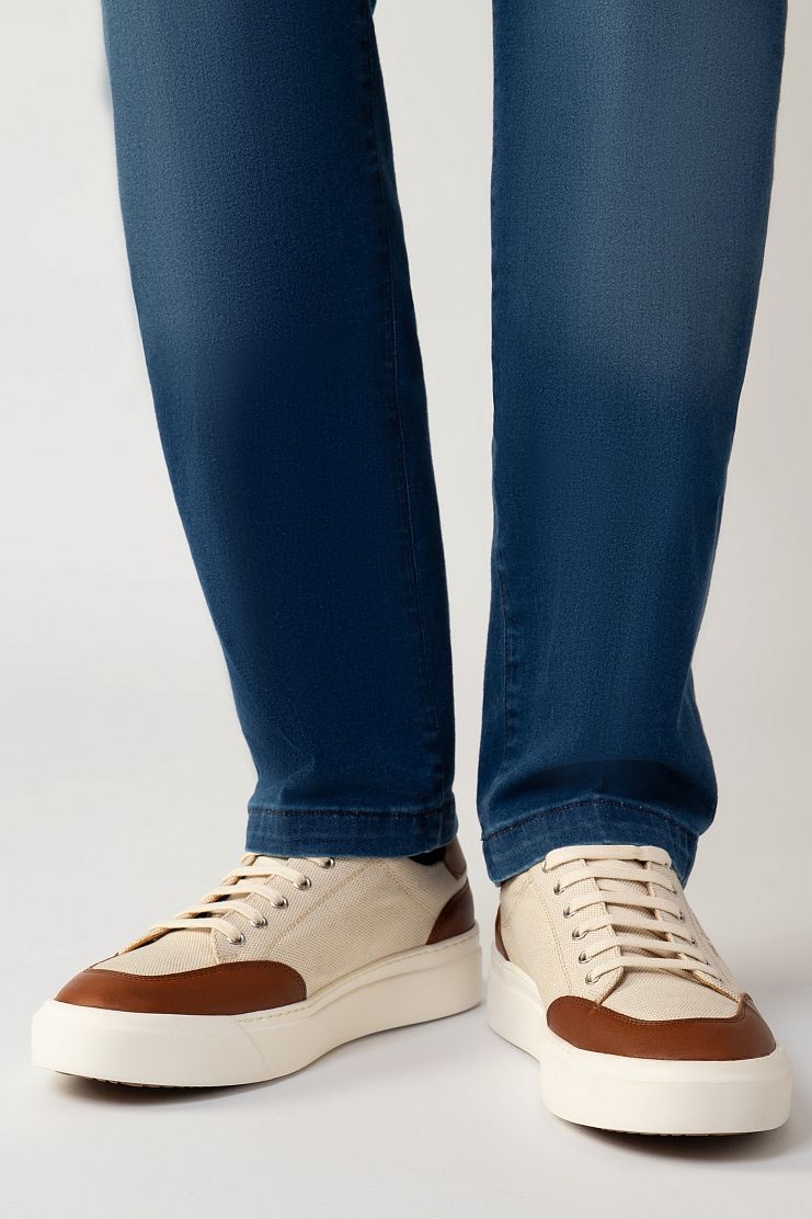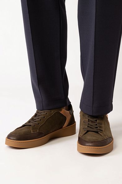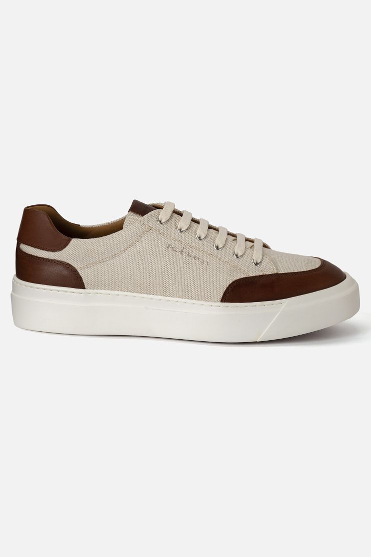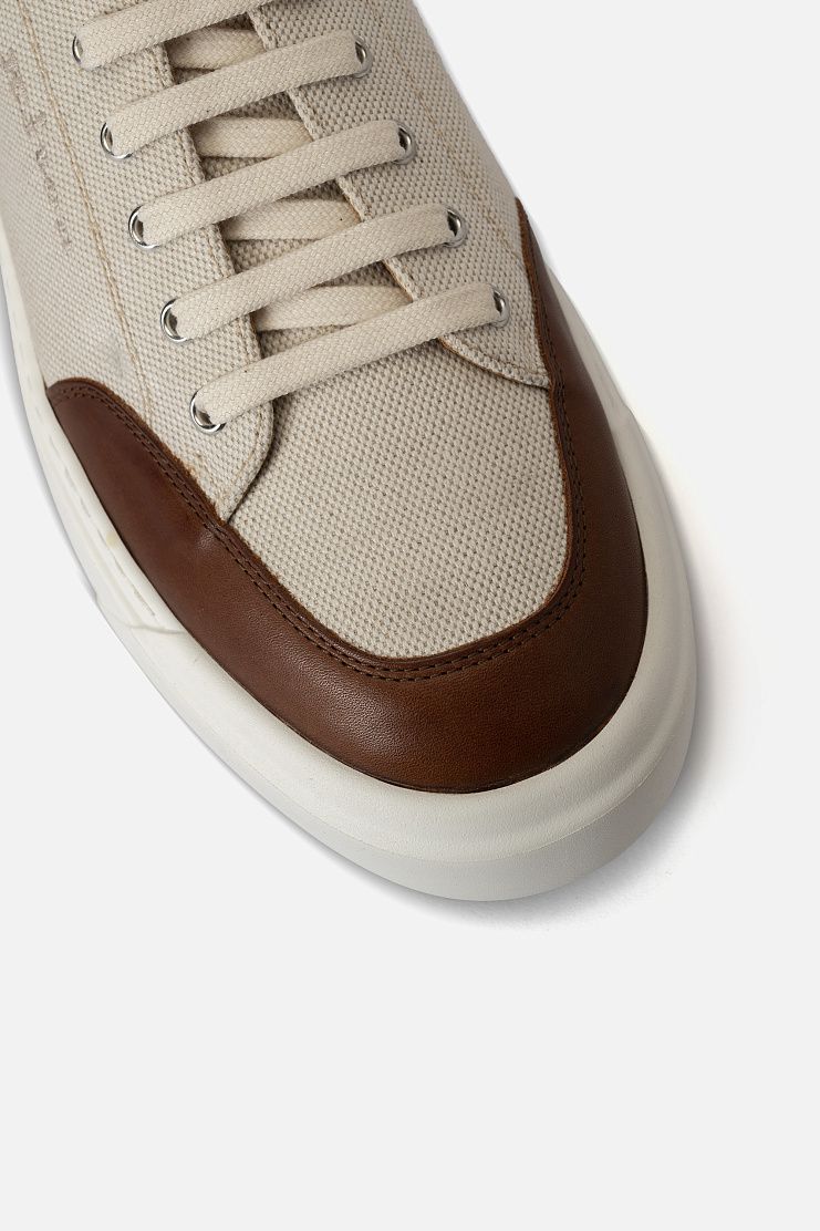При пошиве этой пары использовали плотный хлопковый канвас и гладкую телячью кожу. Модель на широкой подошве из полимера дополнена шнуровкой и вышитым фирменным логотипом в тон сбоку. Такие кеды отлично завершат расслабленный летний образ.