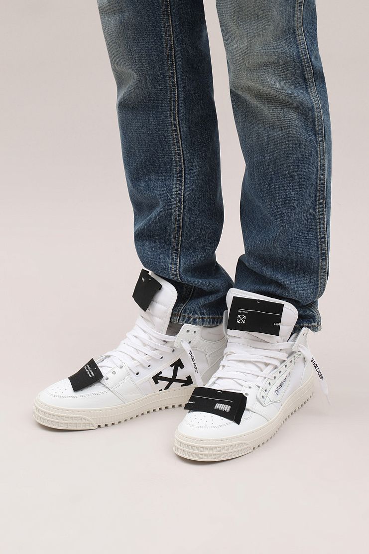 Высокие кеды из текстиля и кожи с манжетами в виде носков, необычным декором и характерными для бренда насмешливыми надписями, подчеркивающими концепцию иронии. Модель имеет кожаную подкладку и резиновую подошву.
