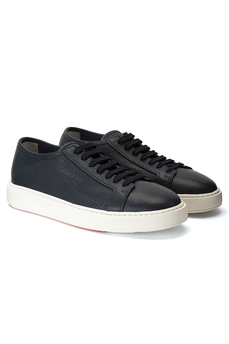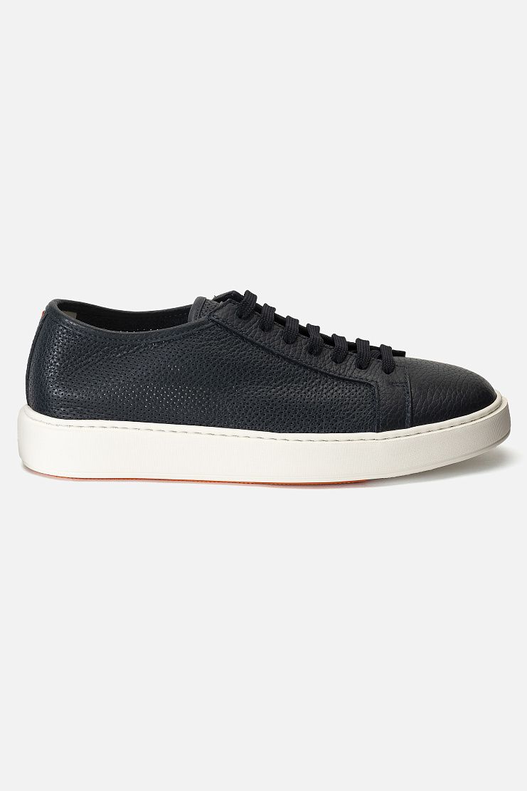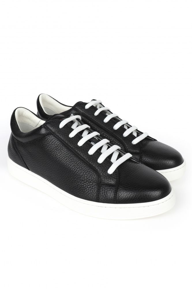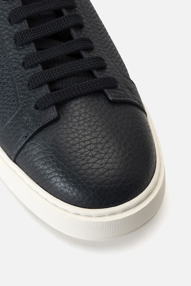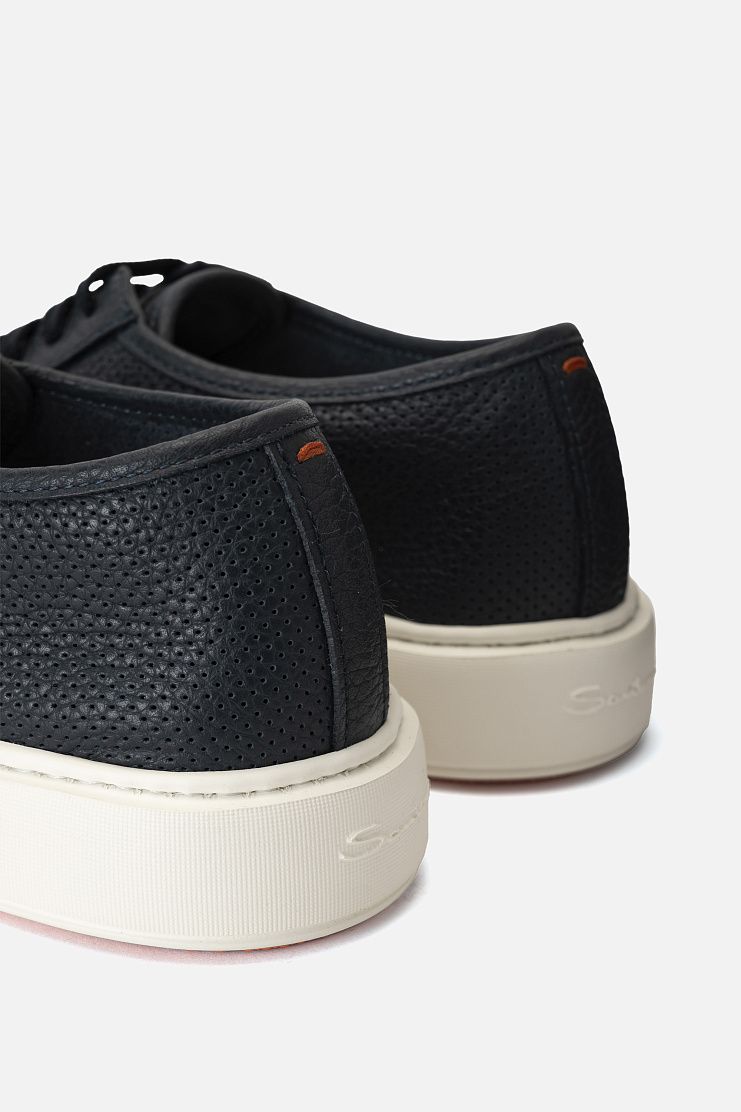 Лаконичные кеды выполнены из зернистой телячьей кожи, которая отличается прочной и устойчивой к повреждениям текстурой. Модель с широкой резиновой подошвой и шнуровкой дополнена вставками фирменного оранжевого оттенка на подошве. Перфорация на боковых частях обеспечивает циркуляцию воздуха, поэтому в кедах будет комфортно даже в жаркие дни.
