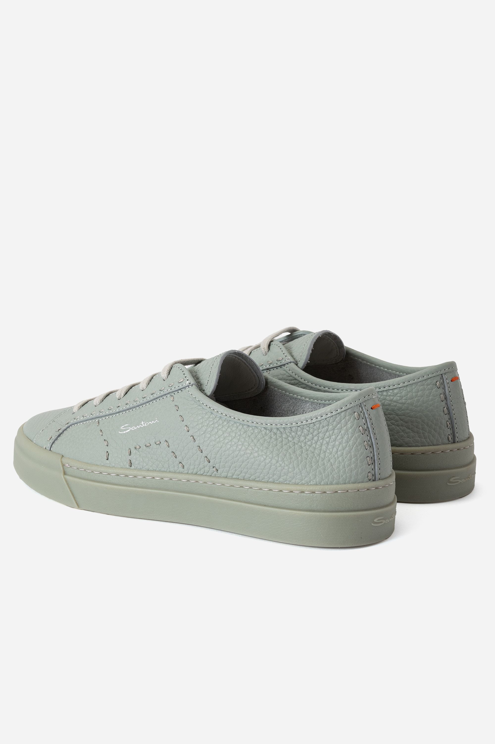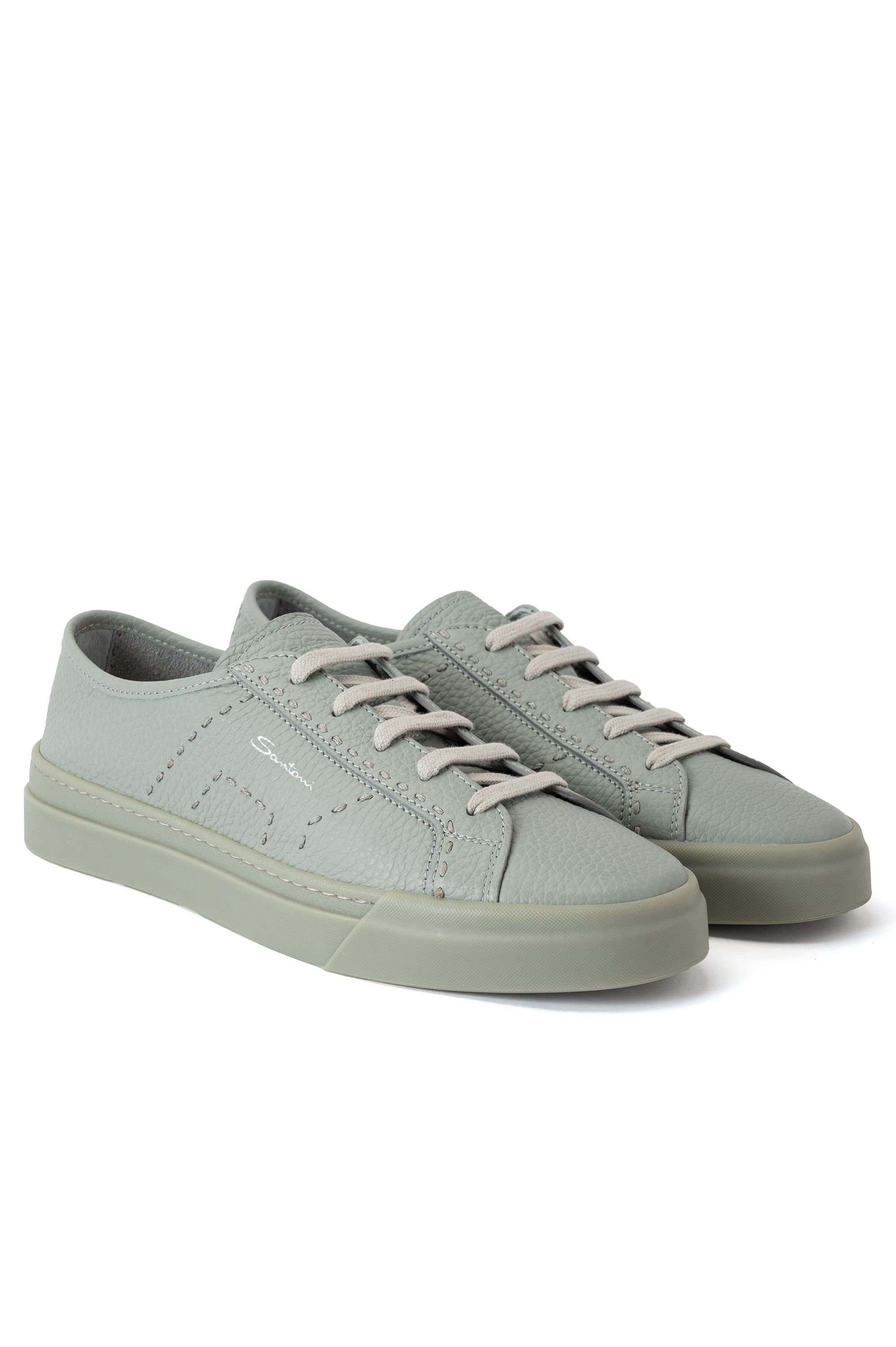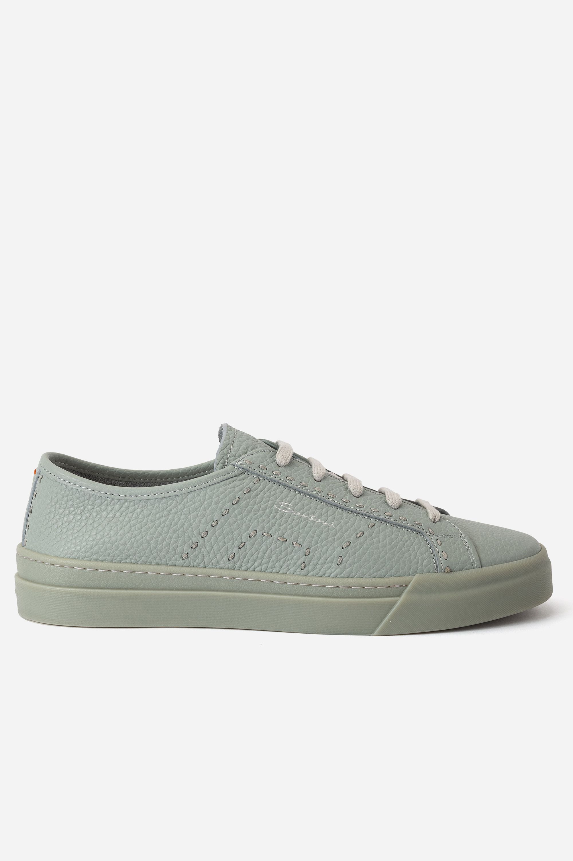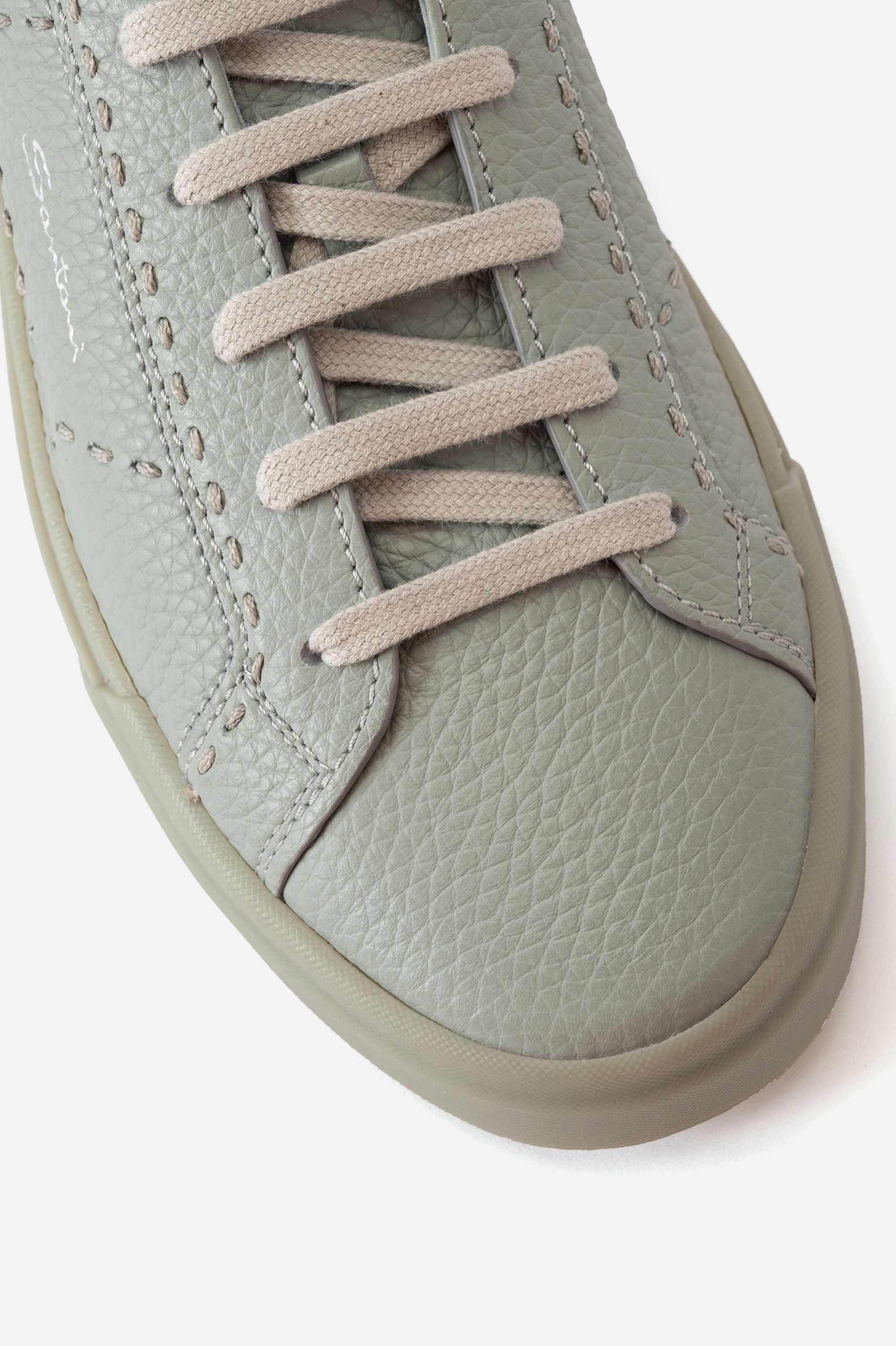 Кеды на широкой подошве сшили из перфорированной кожи, окрашенной в фирменной технике velatura. Пара украшена логотипом на заднике, язычке и боковых вставках Double Buckle.