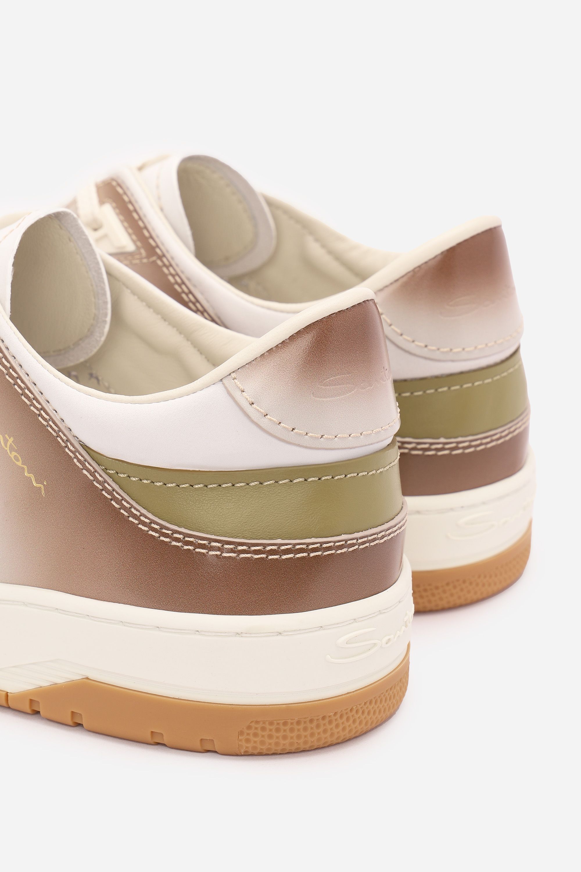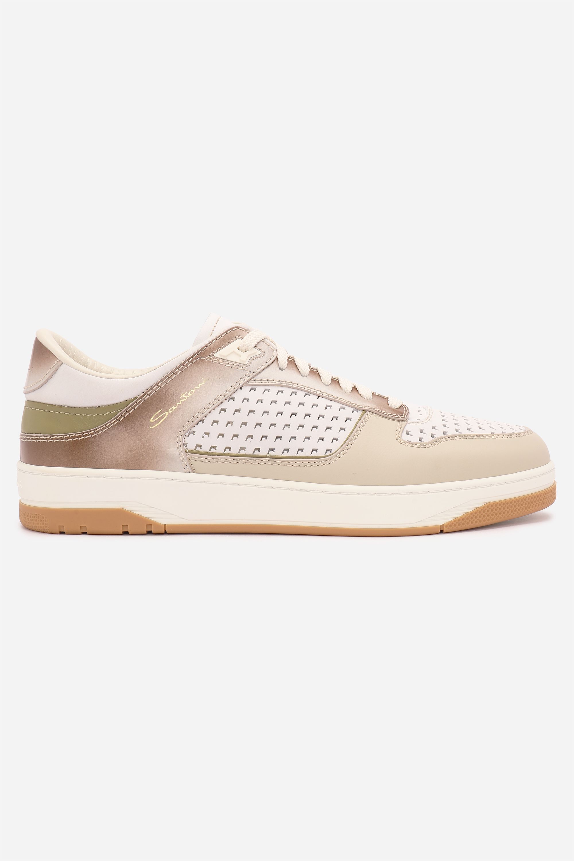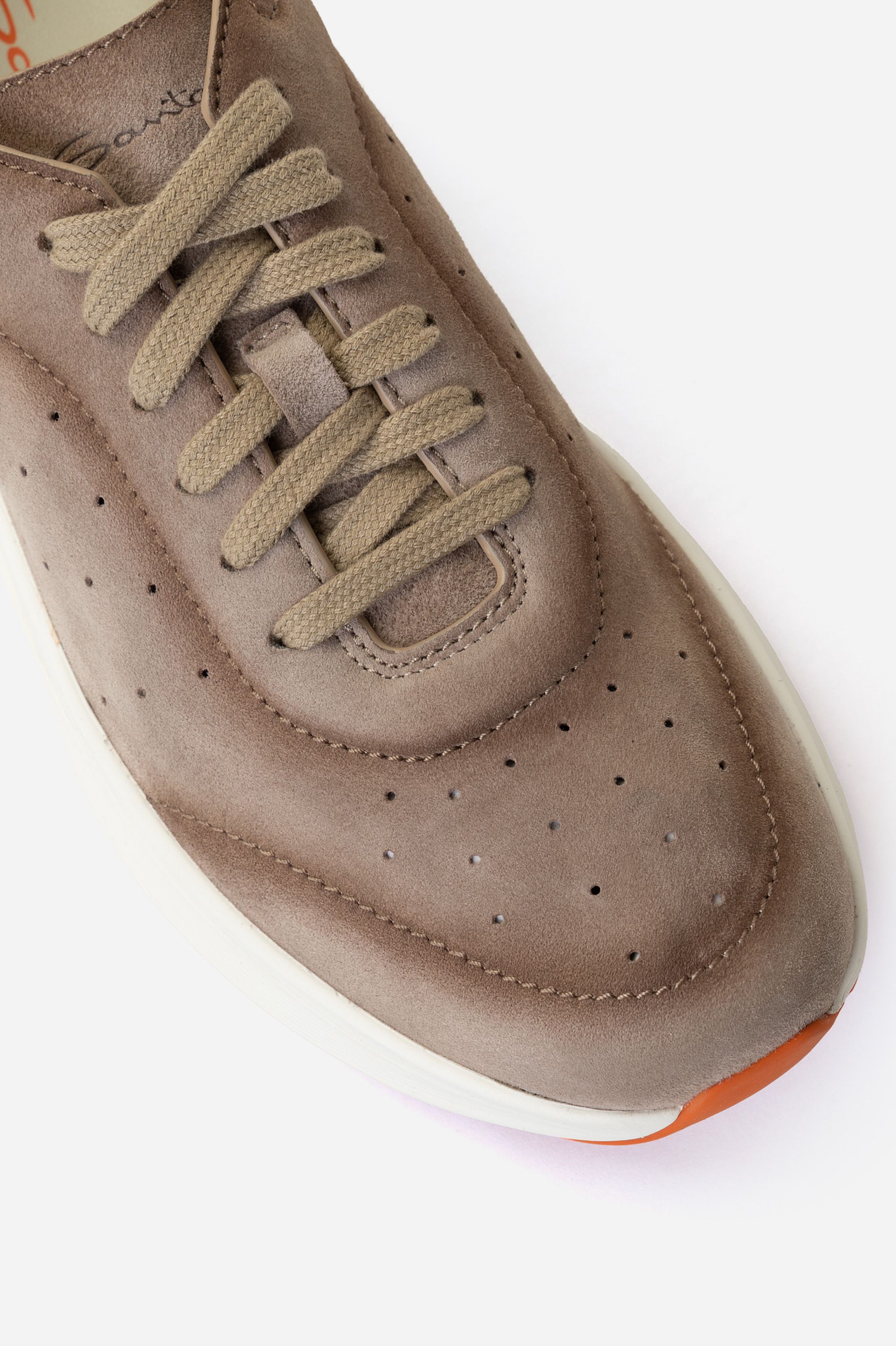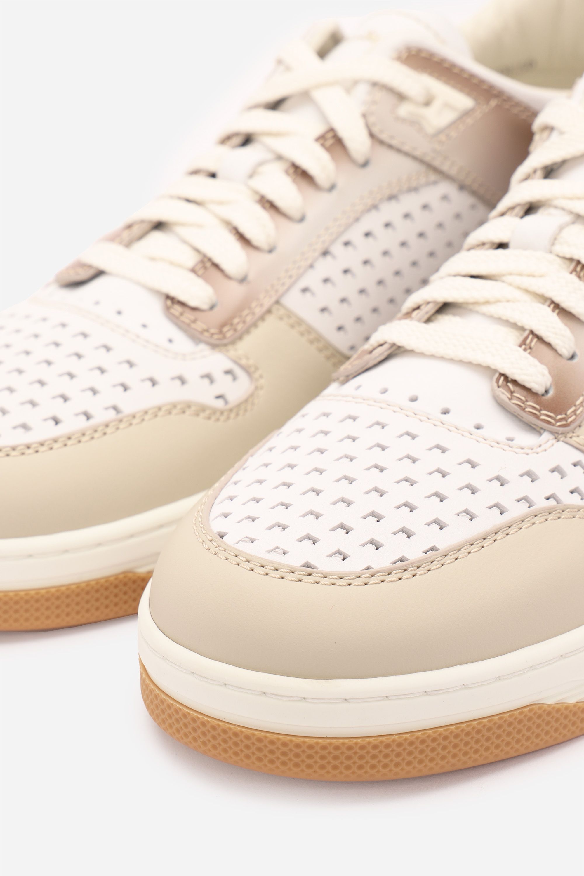 При изготовлении этой пары скомбинировали гладкую телячью кожу и мягкую замшу. Модель на широкой резиновой подошве дополнена шнуровкой и украшена фирменным логотипом на боковых панелях и заднике.