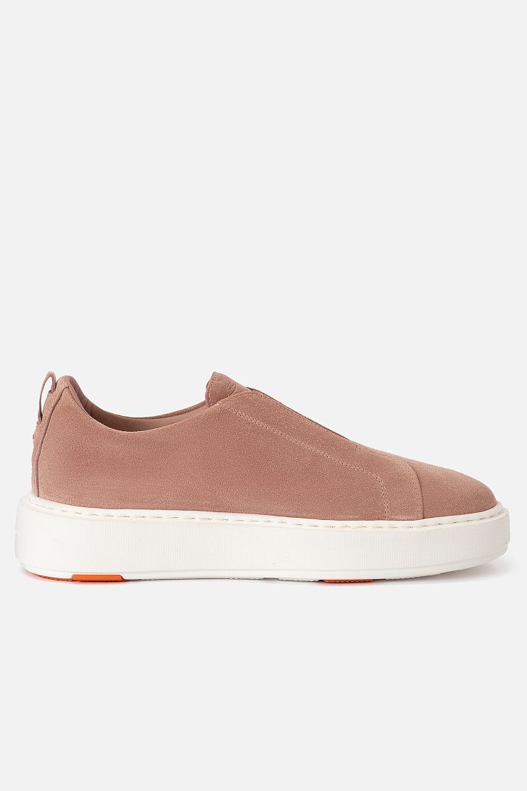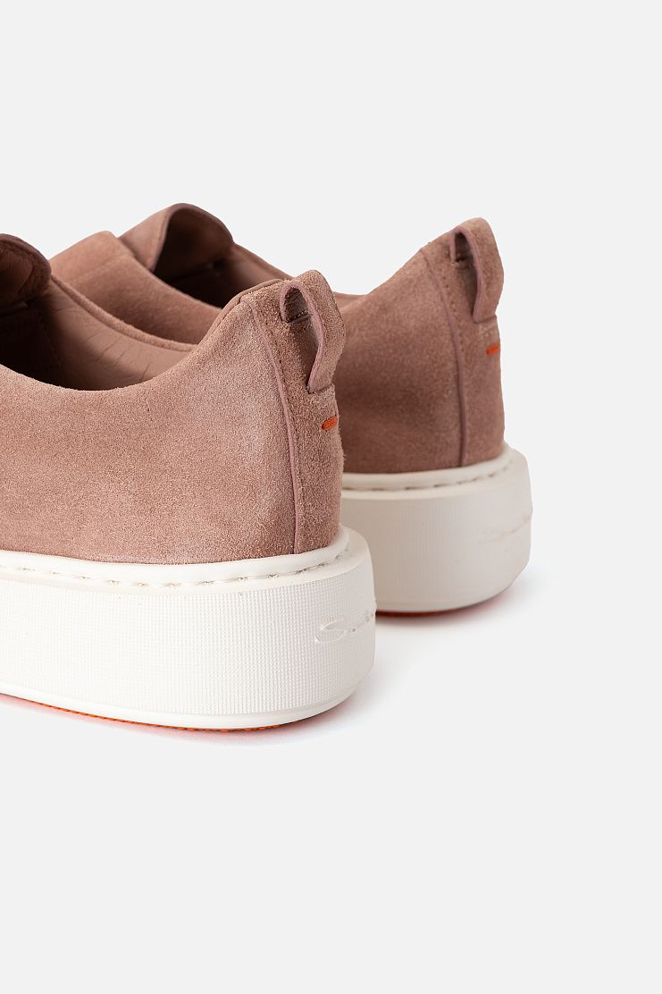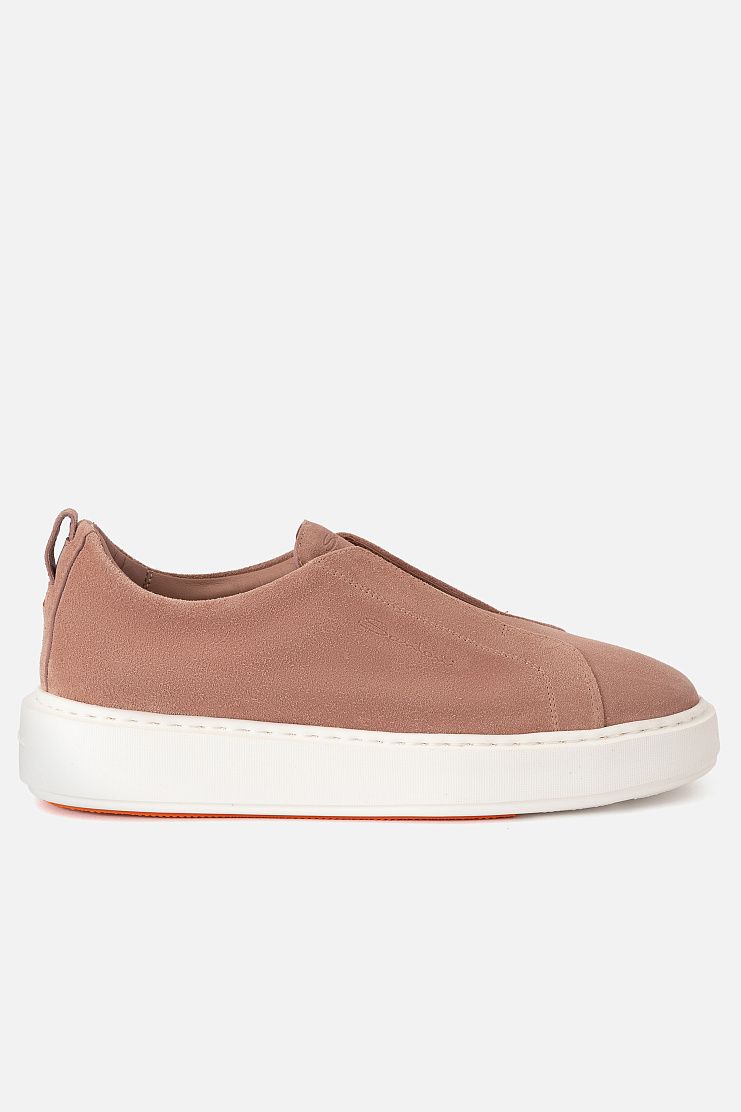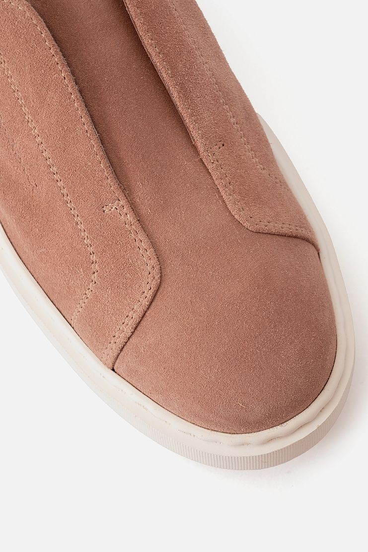 Кеды, напоминающие слипоны, сшили из бархатистой замши. Модель на широкой резиновой подошве дополнена петлей на заднике и декорирована тисненым логотипом сбоку и на язычке.