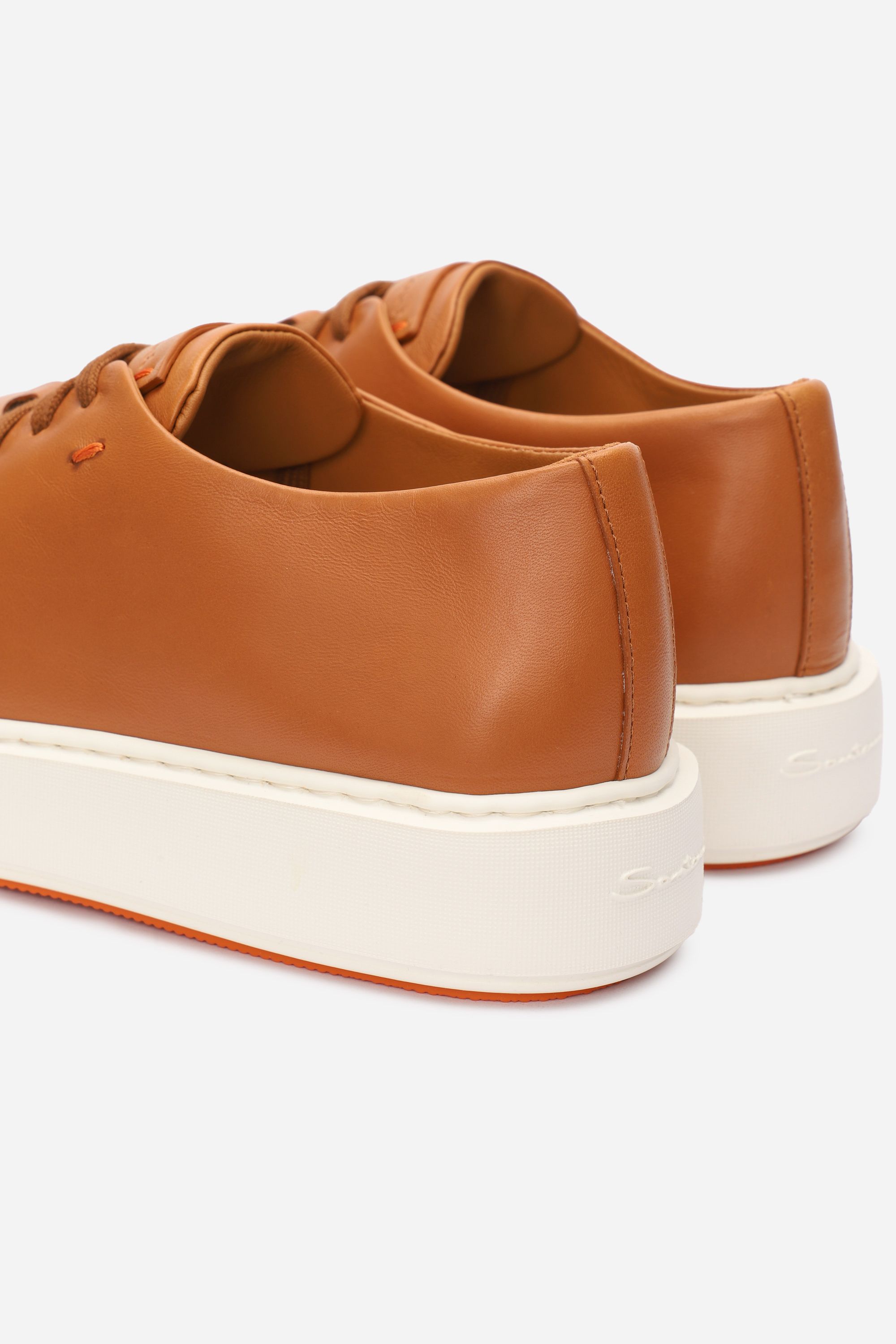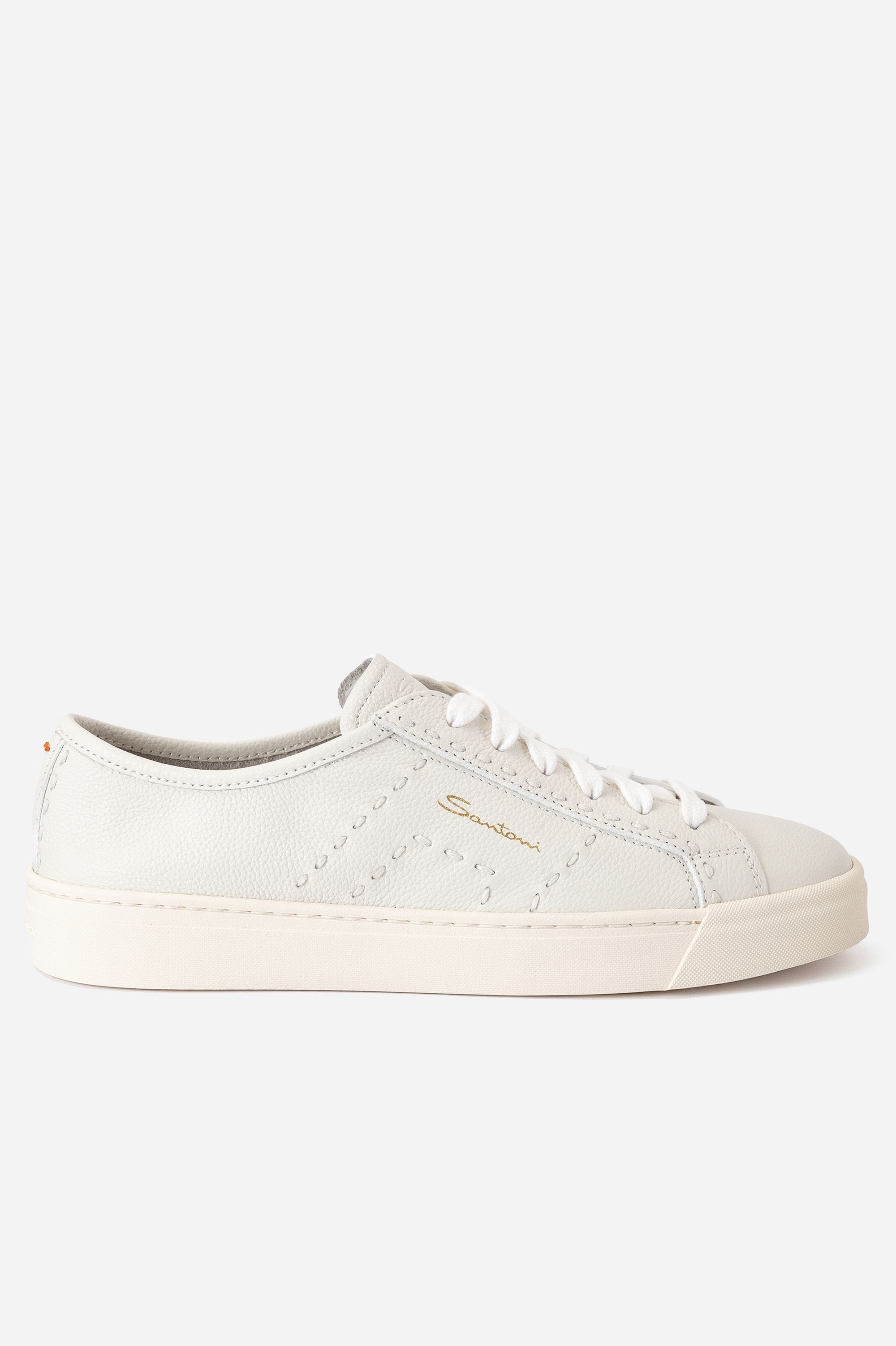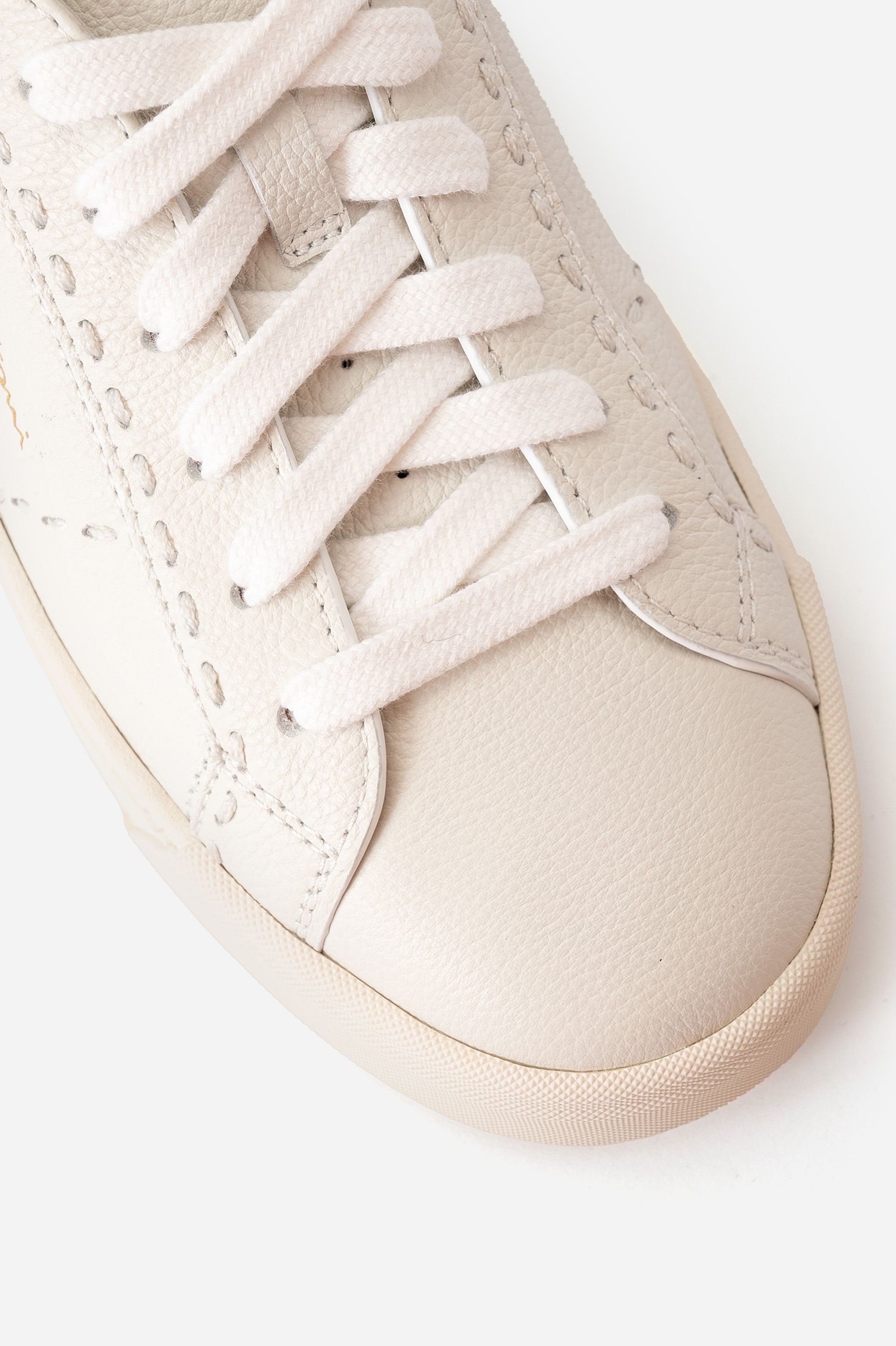 Кеды на широкой резиновой подошве выполнили из прочной кожи с зернистой фактурой. Модель на шнуровке дополнили боковыми накладками в форме знаковых монков с логотипом бренда.