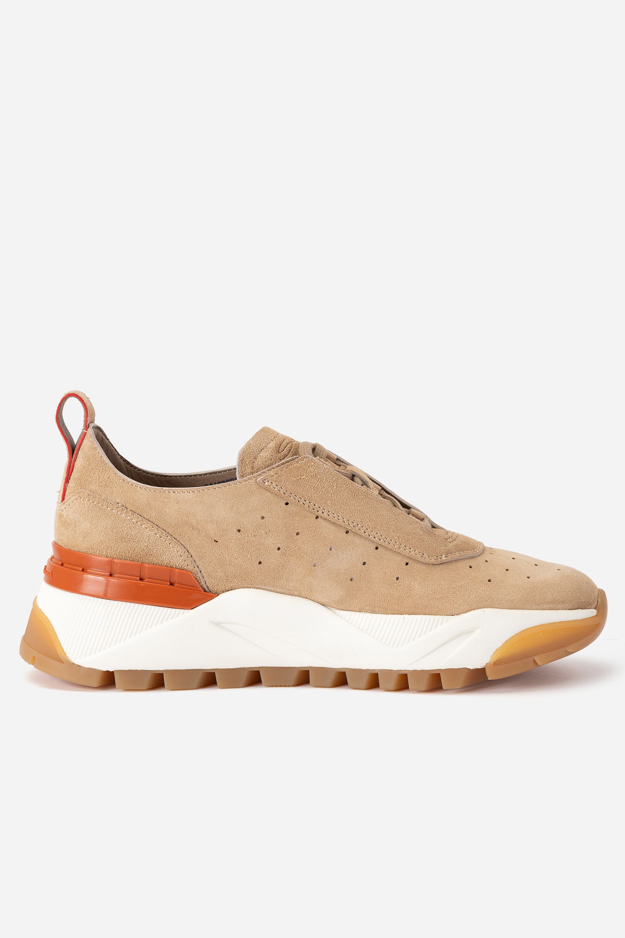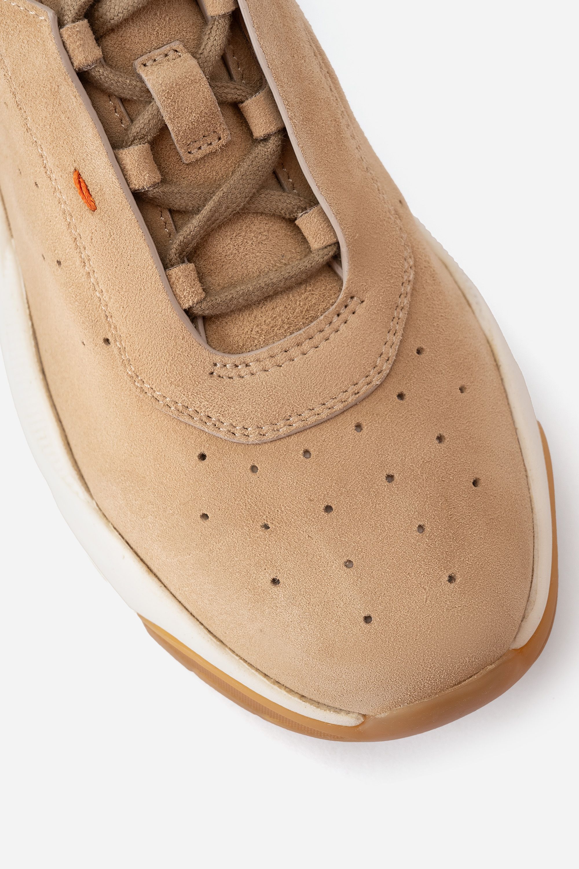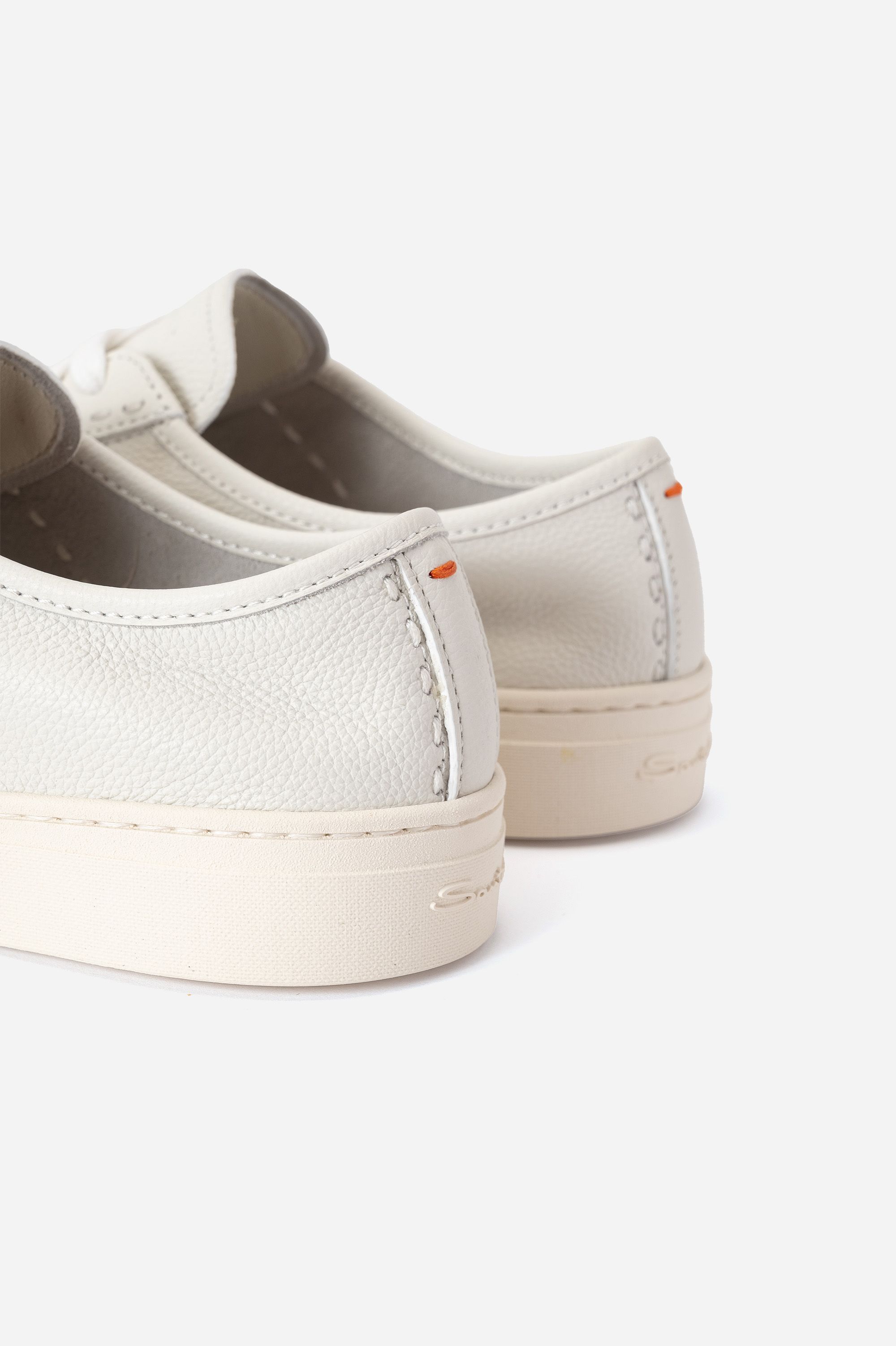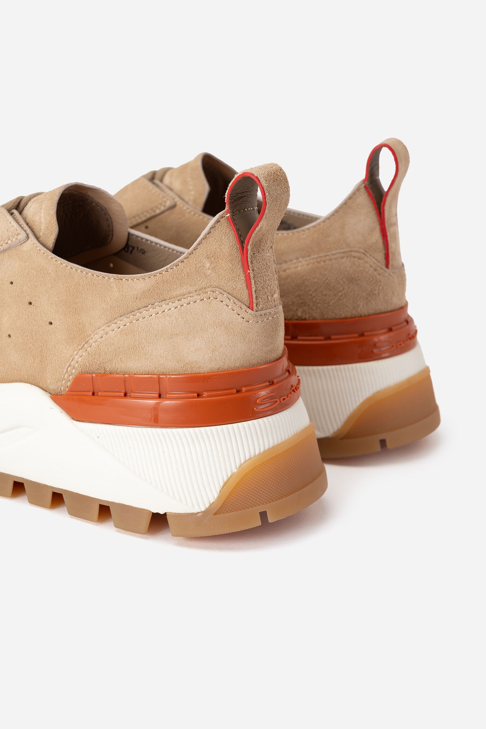 Кеды на широкой резиновой подошве выполнили из прочной кожи с зернистой фактурой. Модель на шнуровке дополнили боковыми накладками в форме знаковых монков с логотипом бренда.
