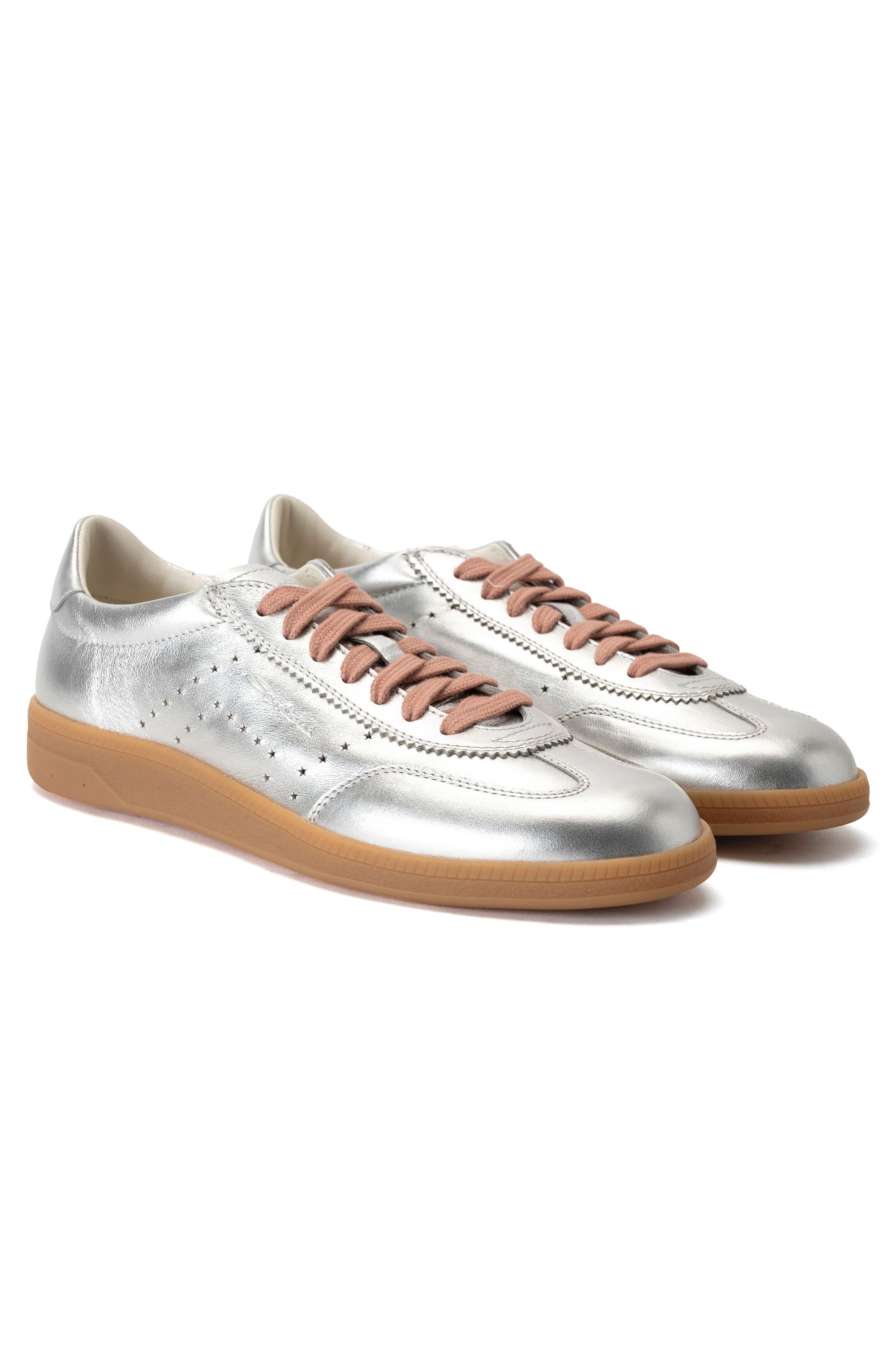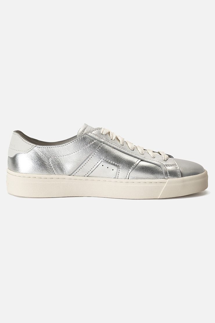Кеды из блестящей металлизированной кожи станут ярким акцентом повседневного образа. Модель с широкой резиновой подошвой и шнуровкой дополнена вставками из матовой кожи на заднике.