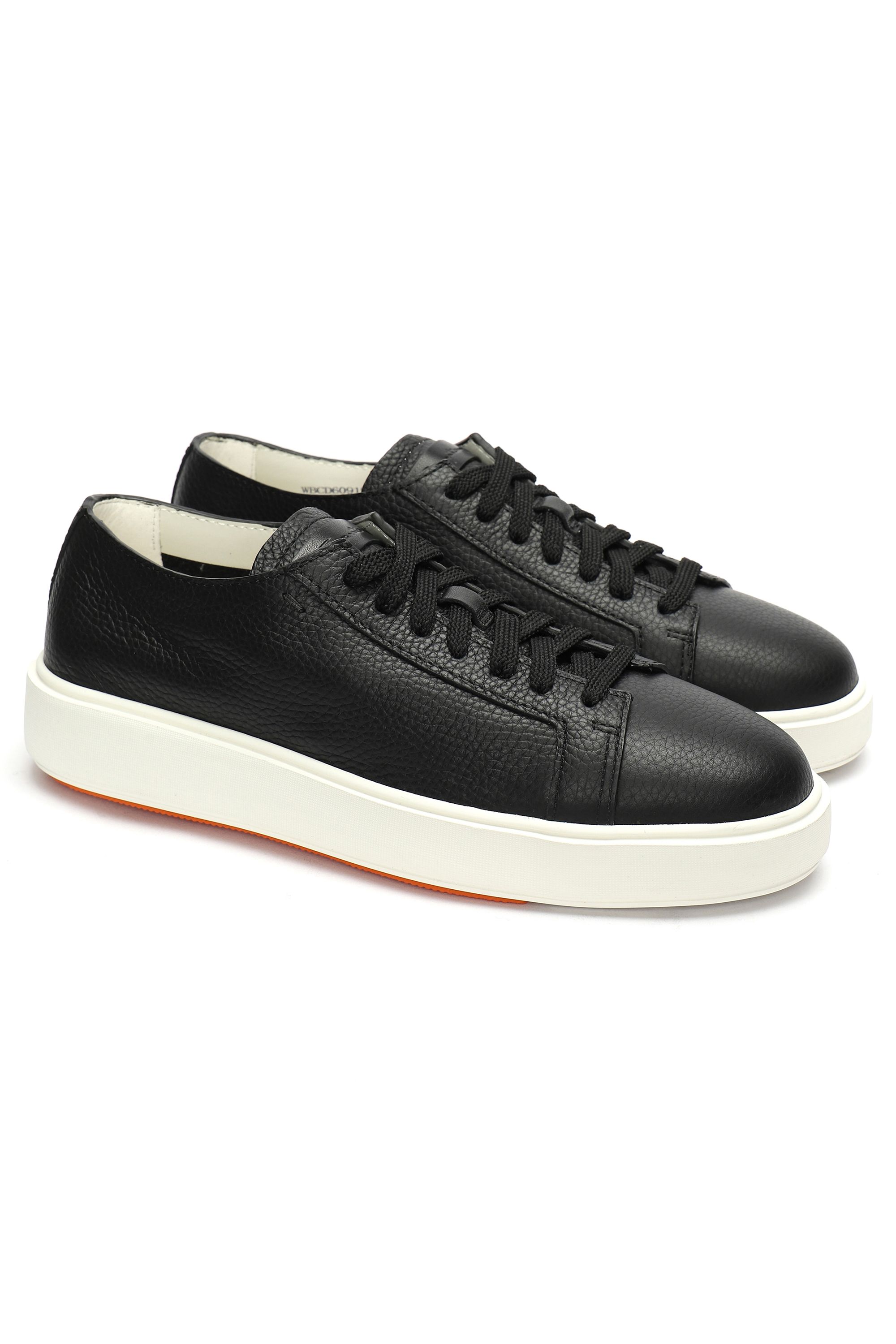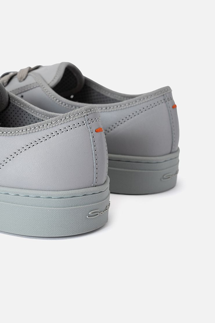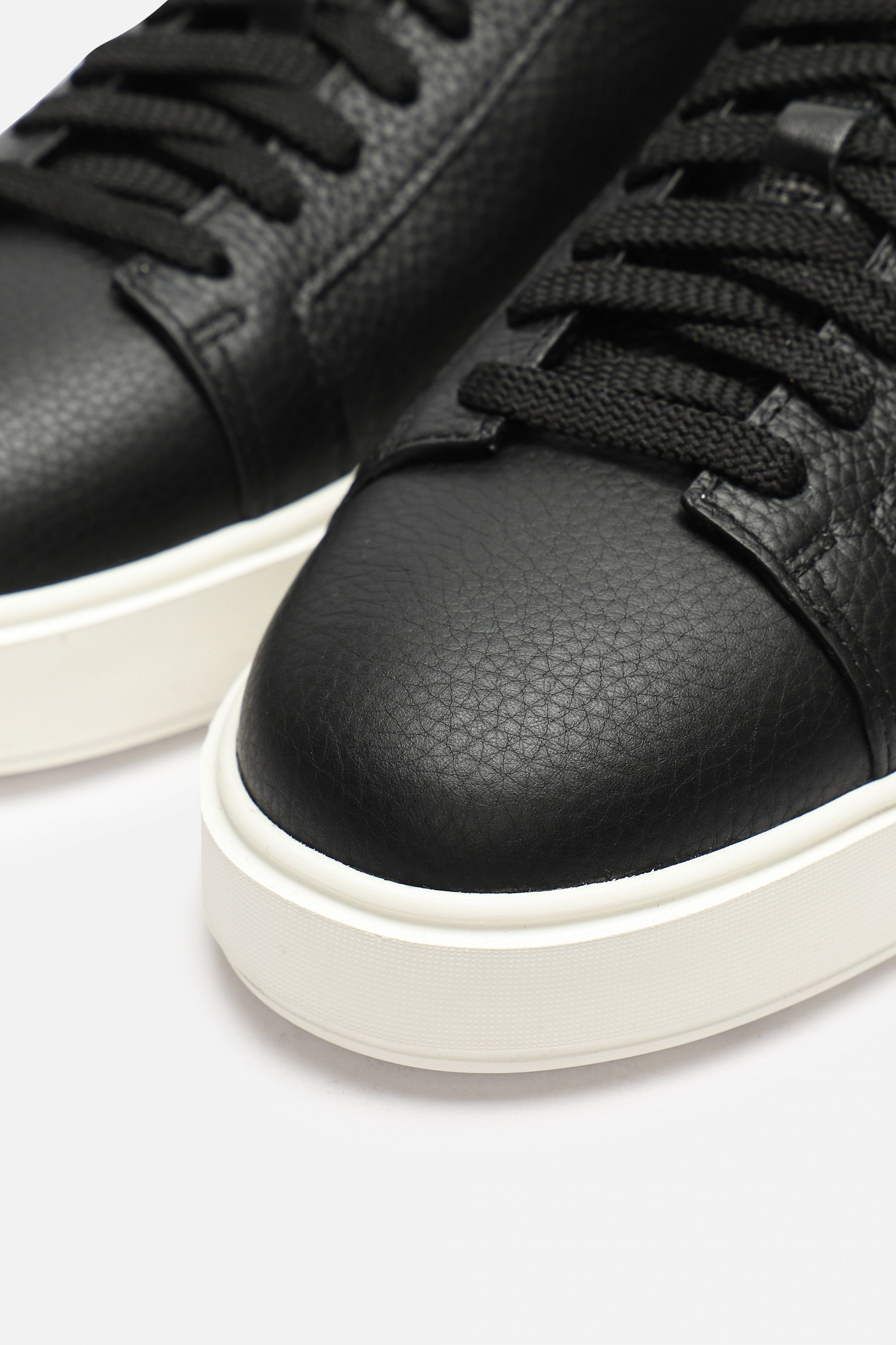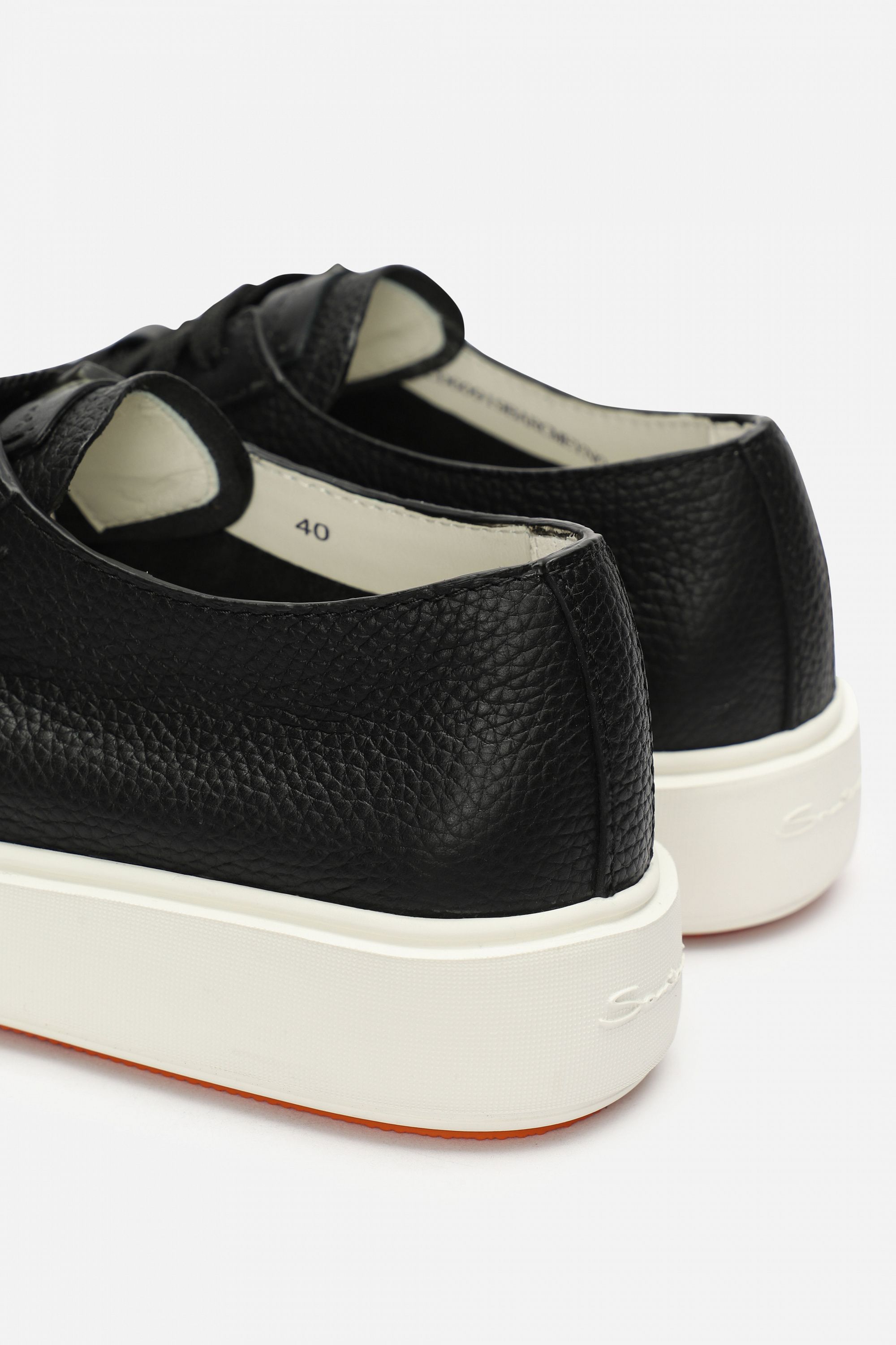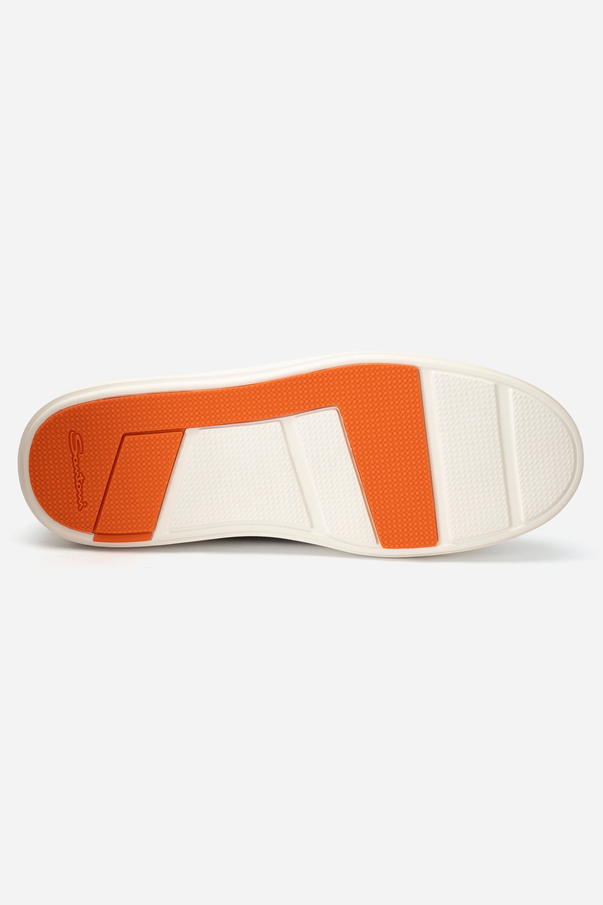Кеды на широкой резиновой подошве сшили из гладкой кожи. Пара декорирована текстильной отделкой, перфорацией, тисненым логотипом и стежком фирменного оранжевого оттенка на заднике.