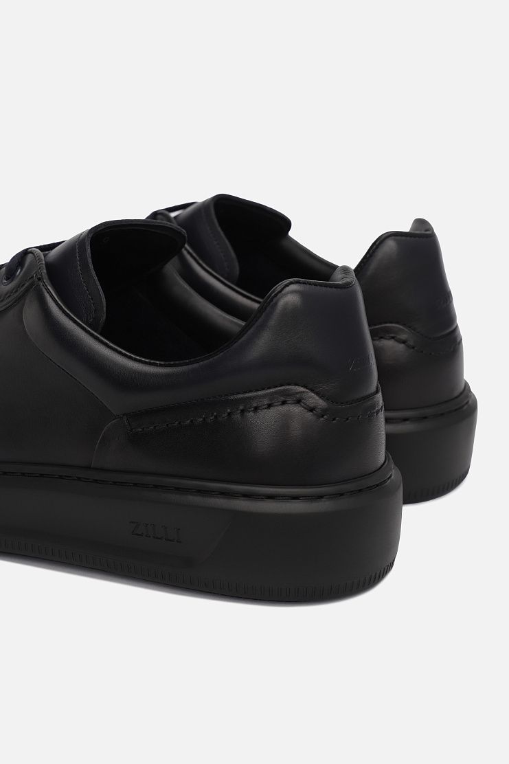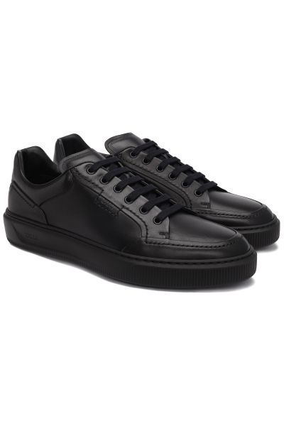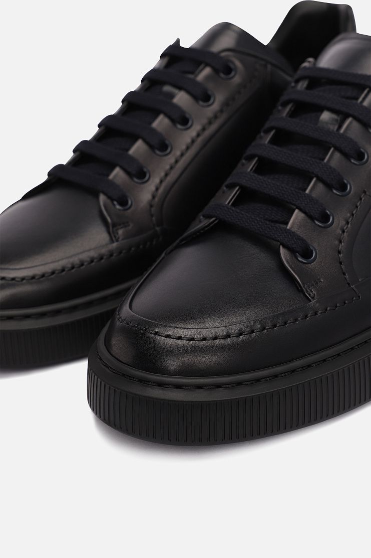 Кеды на гибкой резиновой подошве выполнили из гладкой телячьей кожи. Лаконичная модель с функциональной шнуровкой украсили тисненым логотипом сбоку.