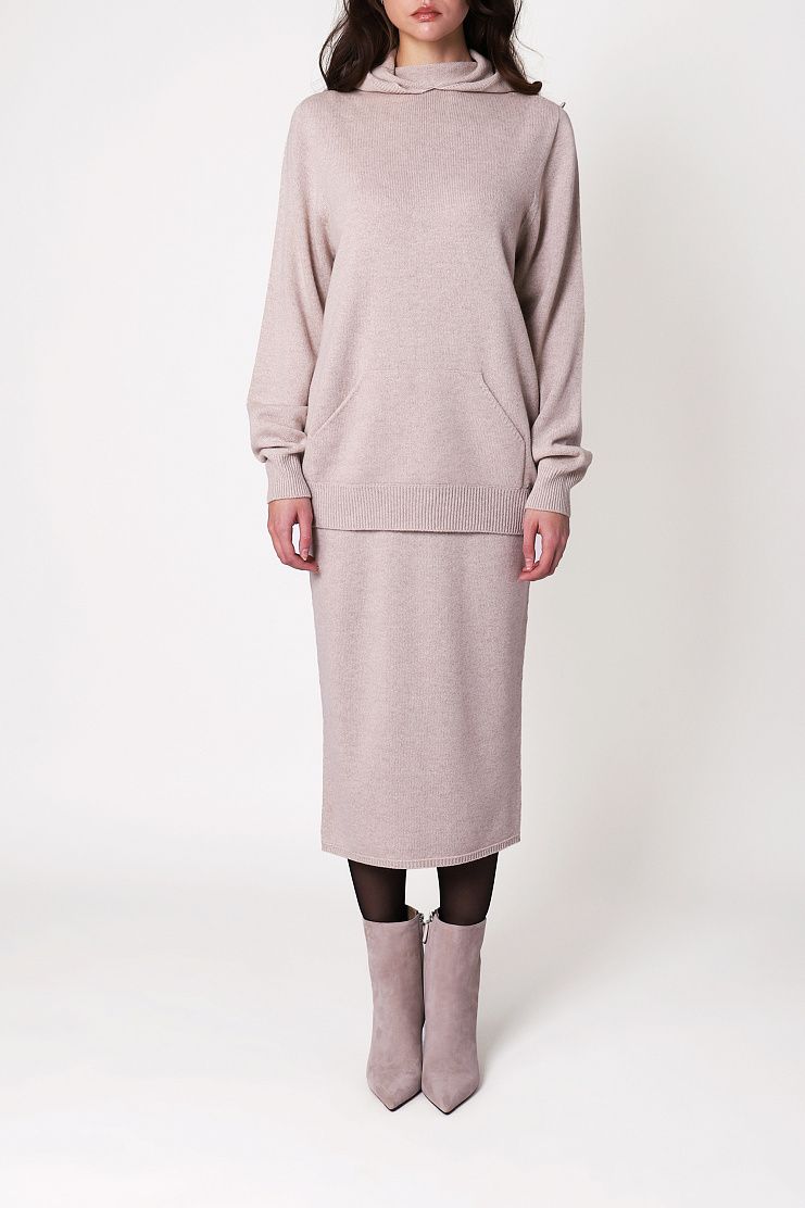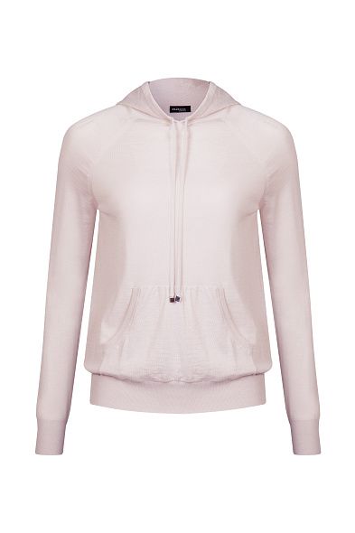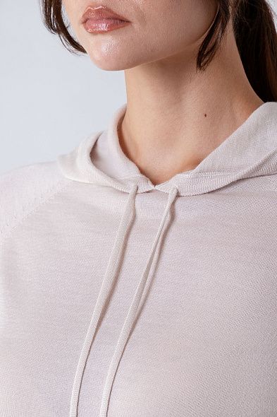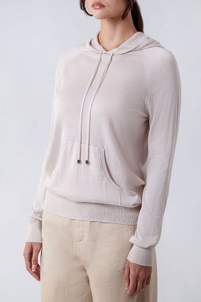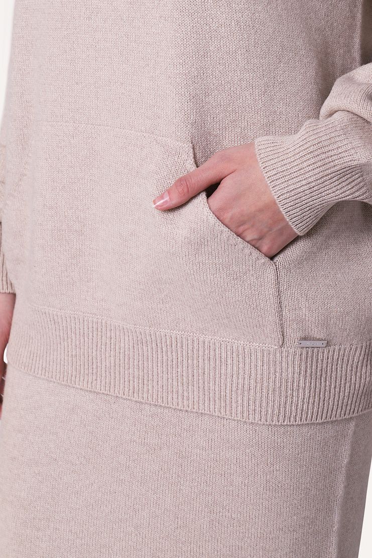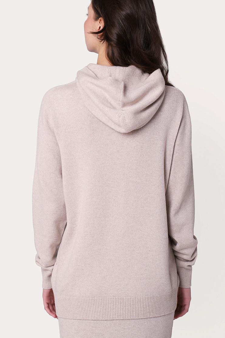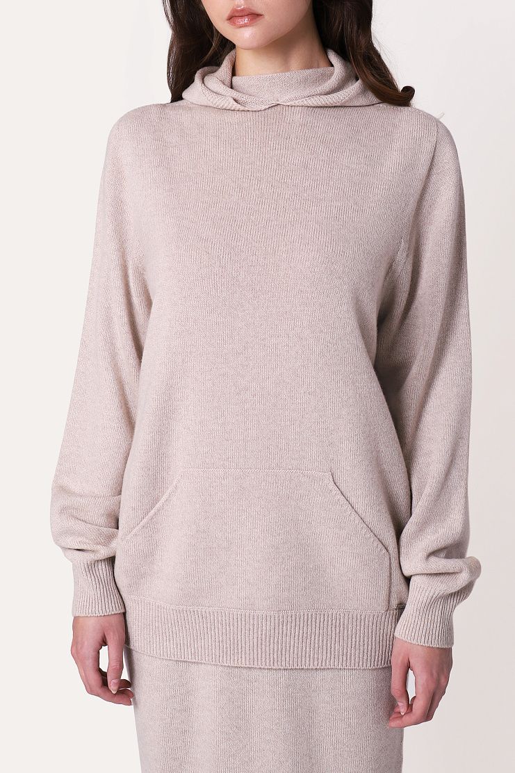 Свободное худи с капюшоном связали из мягкой и теплой кашемировой пряжи, поэтому в нем будет максимально комфортно в прохладную погоду. Модель дополнена отделкой в рубчик на манжетах и поясе, а также большим карманом-кенгуру спереди.