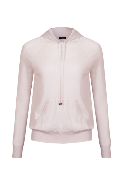 В худи из тонкого кашемирового трикотажа будет комфортно в прохладный день. Модель с капюшоном на кулиске и рукавами реглан дополнена карманом спереди и отделкой в рубчик.