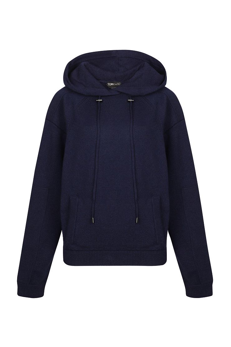 Кашемировая толстовка отлично подойдет для повседневного образа в спортивном стиле. Модель свободного кроя имеет капюшон, боковые карманы и кожаную нашивку с тиснением в виде надписи Tom Ford на спине.