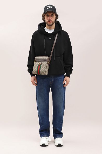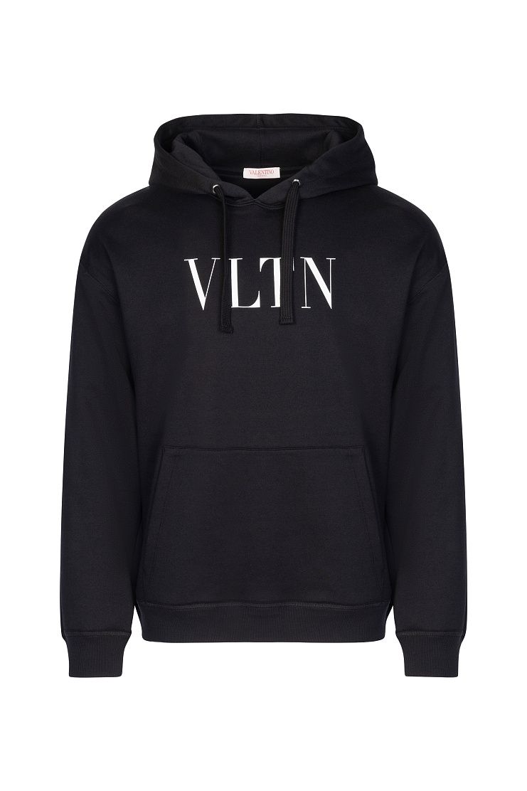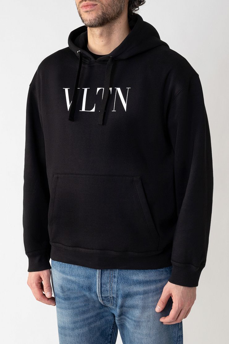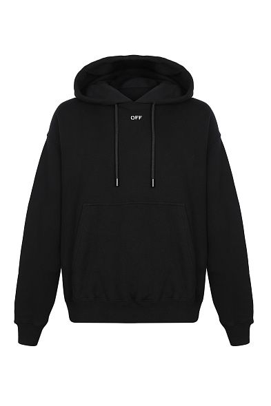 Объемное худи со спущенной линией плеч выполнено из эластичного хлопкового трикотажа. Модель с капюшоном на шнурке, накладным карманом и отделкой в рубчик украшена крупным контрастным логотипом спереди. Универсальный вариант для повседневных образов с джинсами и брюками-карго.