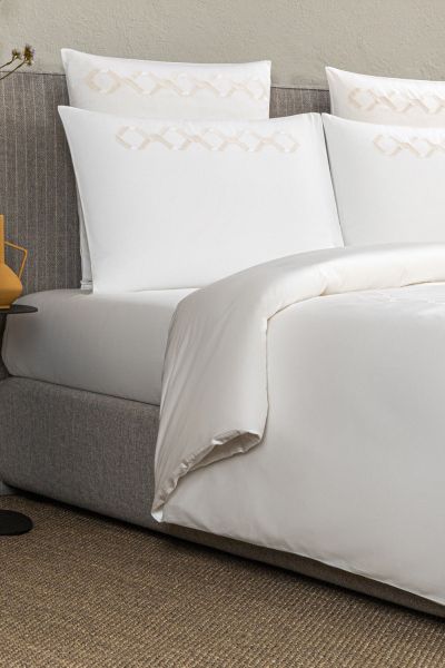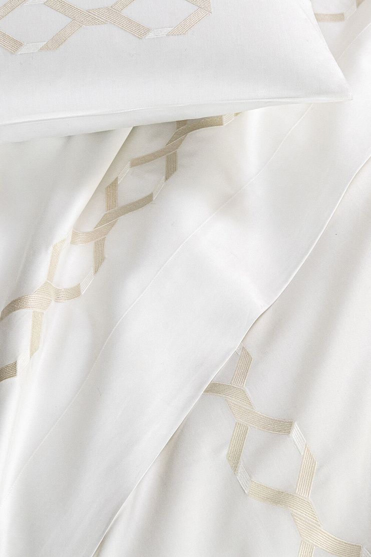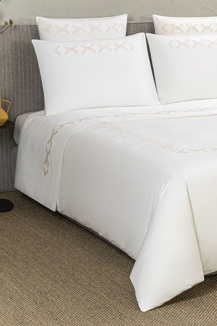 Двуспальный комплект постельного белья Continuity Embroidery с вышивкой в виде геометрического орнамента белого и бежевого цветов отлично подойдет для спальни в современном стиле. Изделия из мягкого длинноволокнистого хлопка отличаются неповторимой гладкостью, шелковистостью и высокой прочностью.
