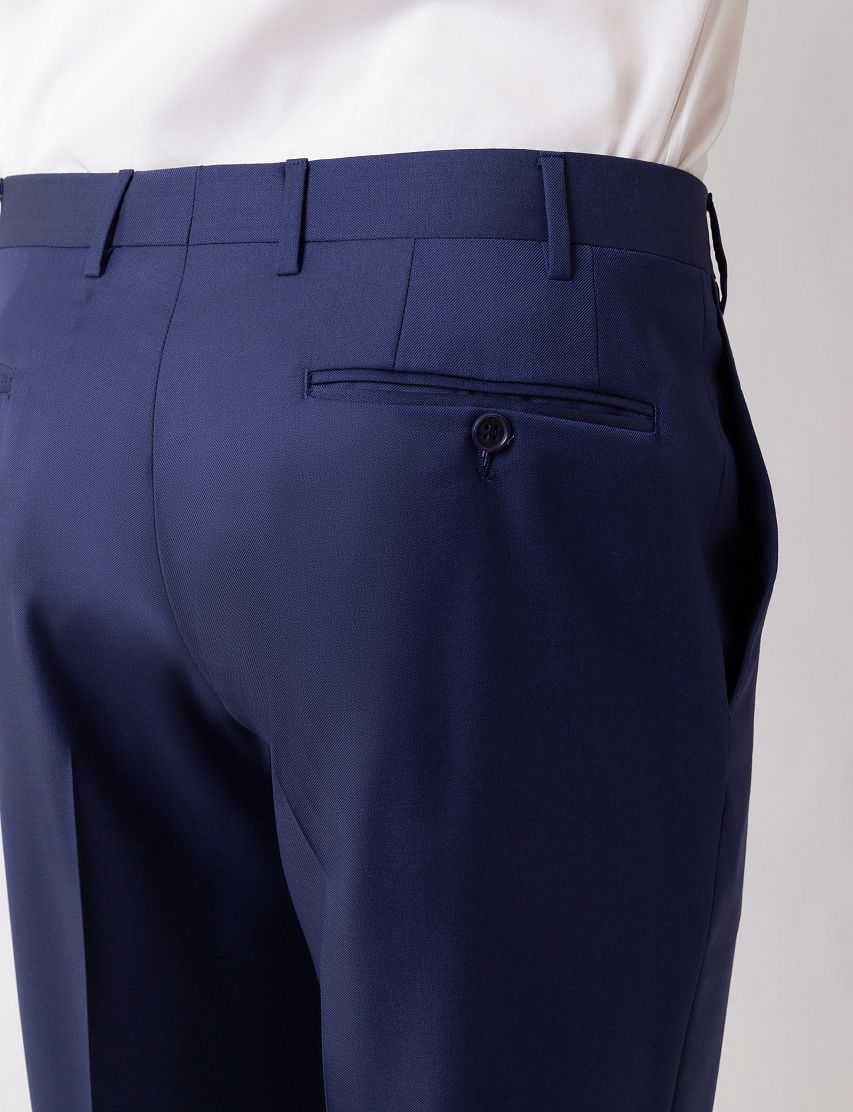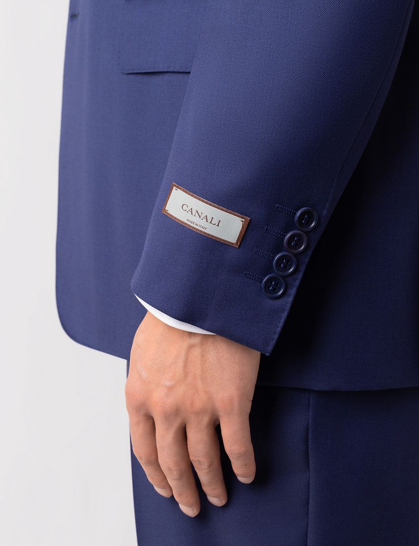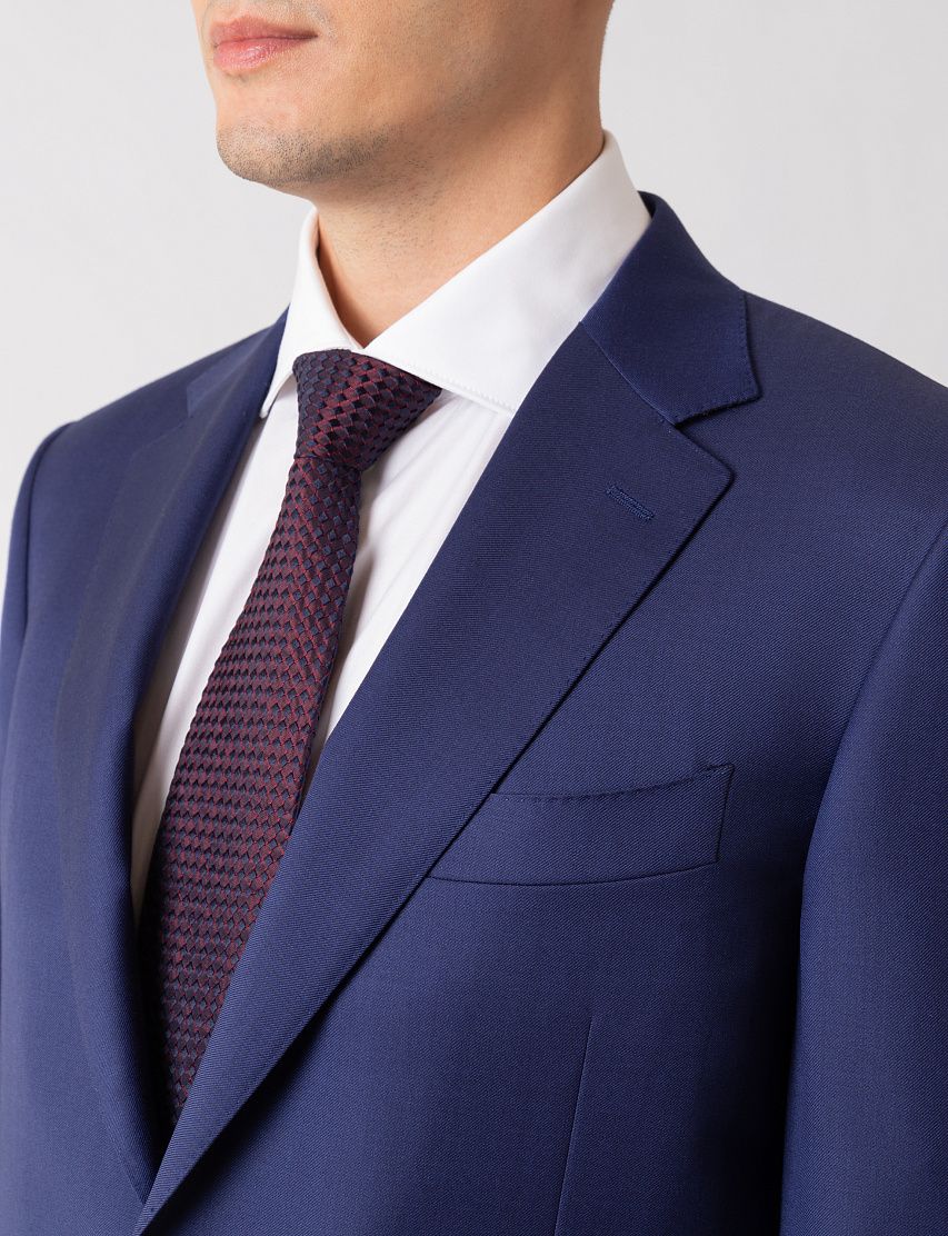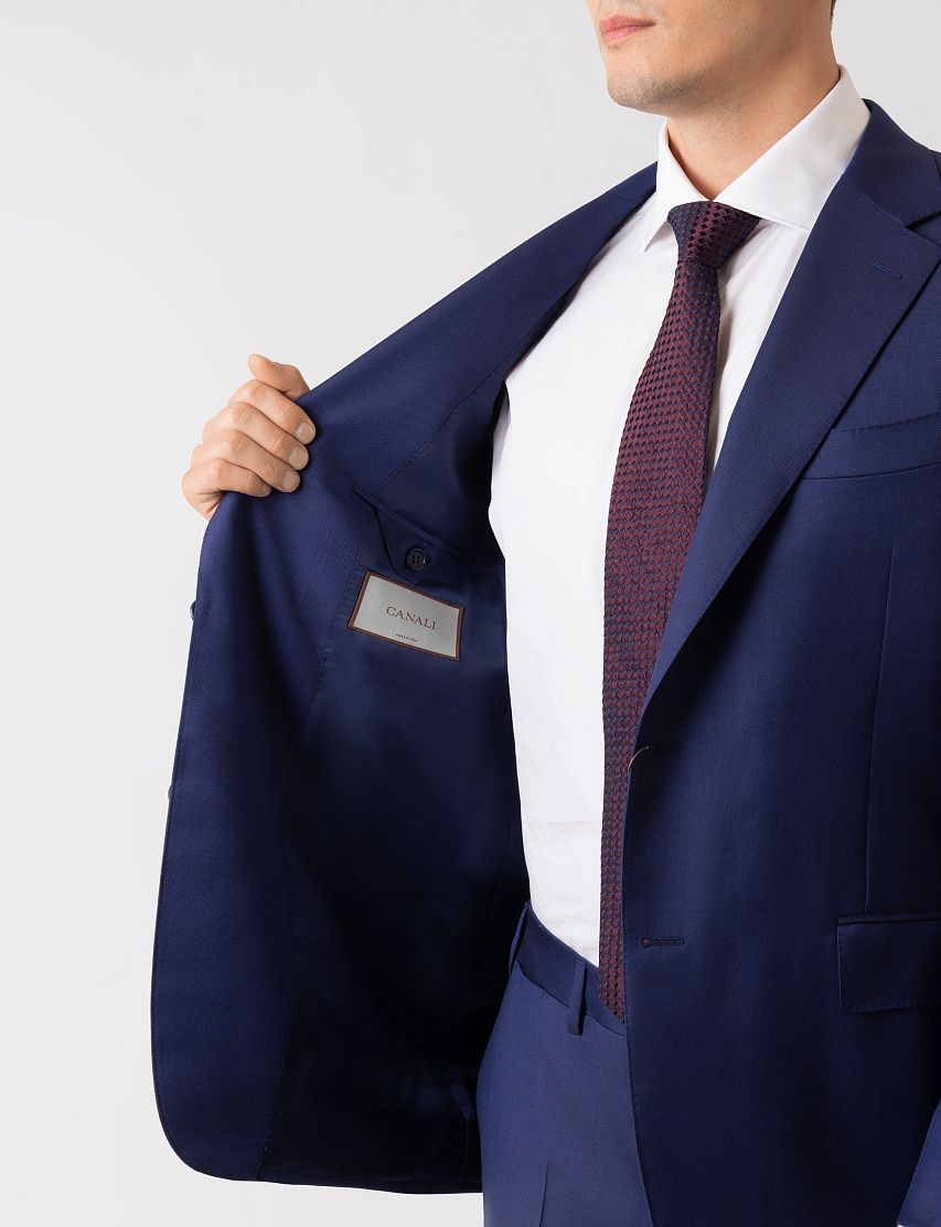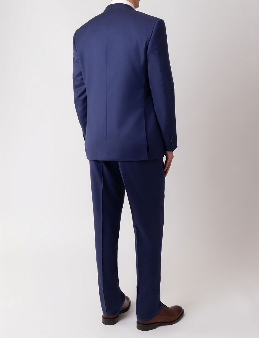 Для изготовления костюма-двойки использовали гладкую и тонкую шерсть. Однобортный пиджак с прямоугольными лацканами и двумя шлицами дополнен четырьмя карманами, как и брюки со стрелками.