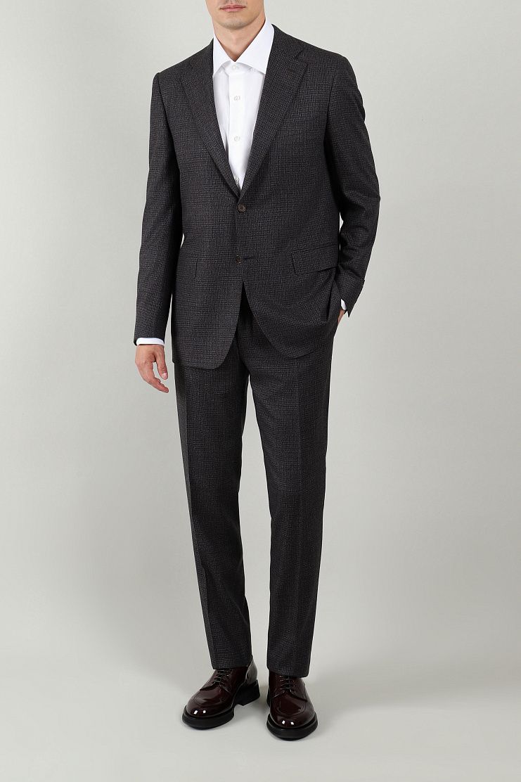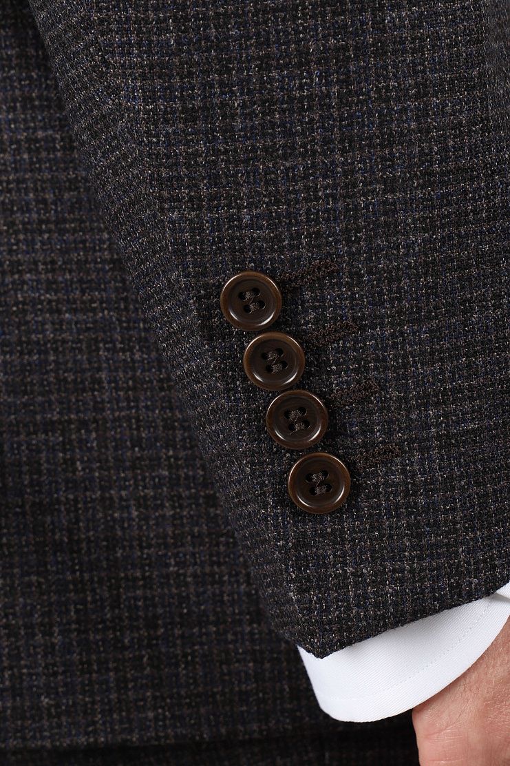 Костюм в мелкую клетку прекрасно подойдет для элегантного образа. Пиджак прямого кроя на подкладке. Брюки прямого кроя со стрелками и застежкой на молнию и пуговицу.