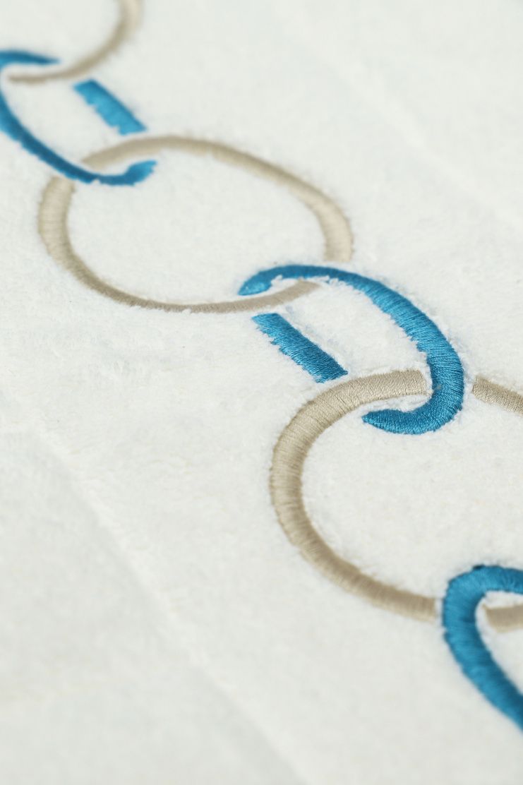 Коврик Links с вышивкой в виде цепочки контрастных оттенков и сатиновой отделкой по краям станет стильным дополнением интерьера ванной комнаты. Изделие выполнено из мягкого хлопка.