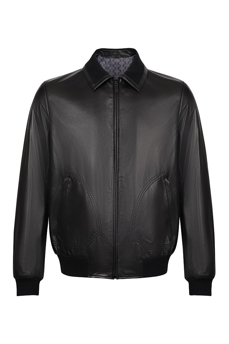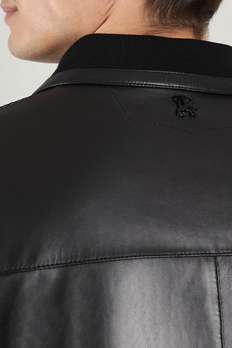 Кожаная куртка прекрасно подойдет для стильного городского образа. Модель свободного кроя имеет отложной воротник с вставкой, манжеты и нижний край из трикотажной резинки, боковые карманы и застежку на молнию.