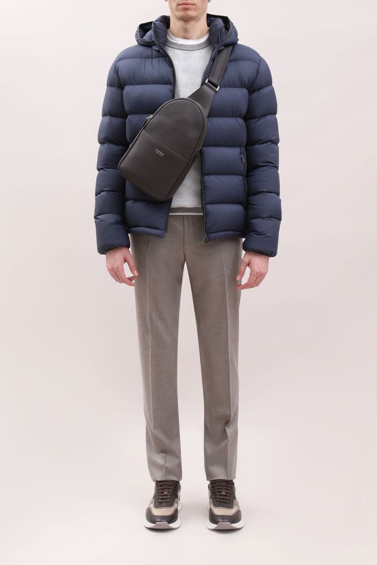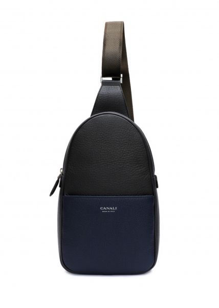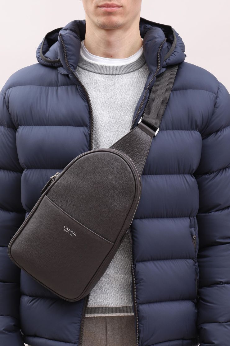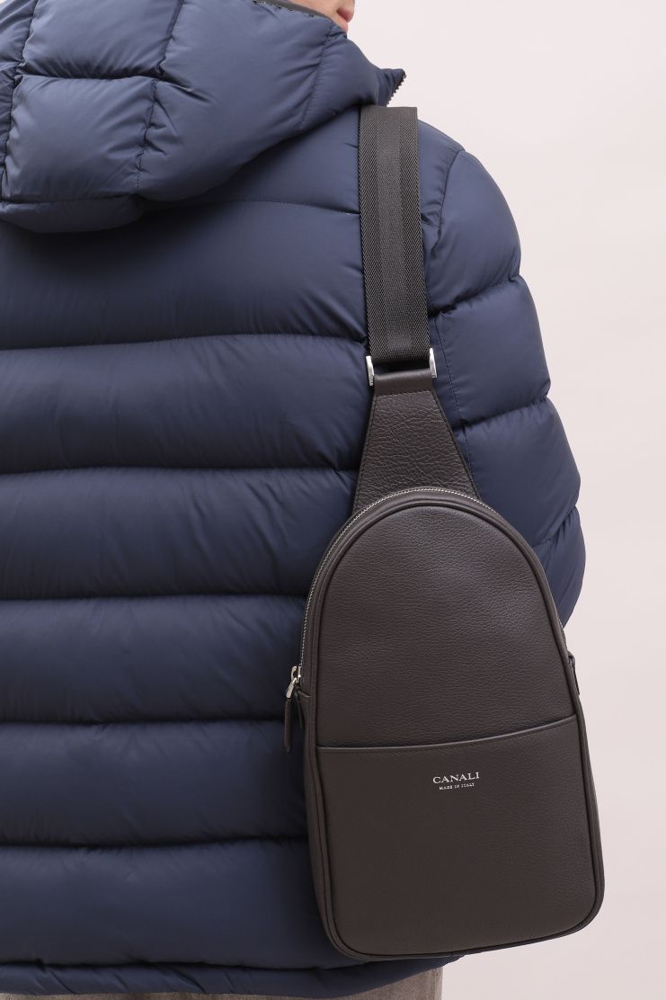 Сумка через плечо из зернистой кожи шикарного сочетания синего и коричневого цветов станет незаменимым аксессуаром современного мужчины. Модель имеет основное отделение на молнии, внутренний и внешний карманы и регулируемый ремень.