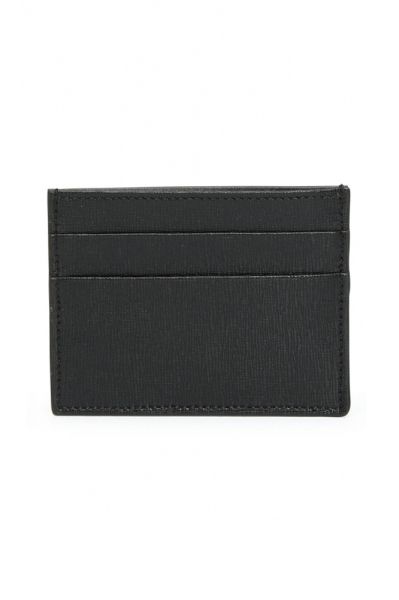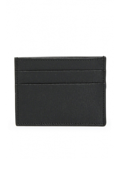 Кардхолдер из сафьяновой кожи чёрного цвета. Изделие выполнено с отделениями для пяти карт и с логотипом бренда спереди.