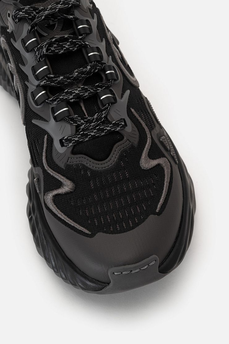 Кроссовки Ripple изготовили из эластичного и дышащего текстиля с сетчатой фактурой, укрепив вставками из полимера. Модель на фигурной резиновой подошве дополнили шнуровкой, вышитыми деталями, а также логотипом марки на язычке, боковых панелях и заднике.