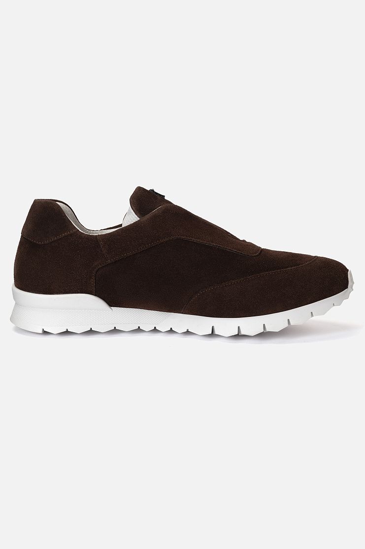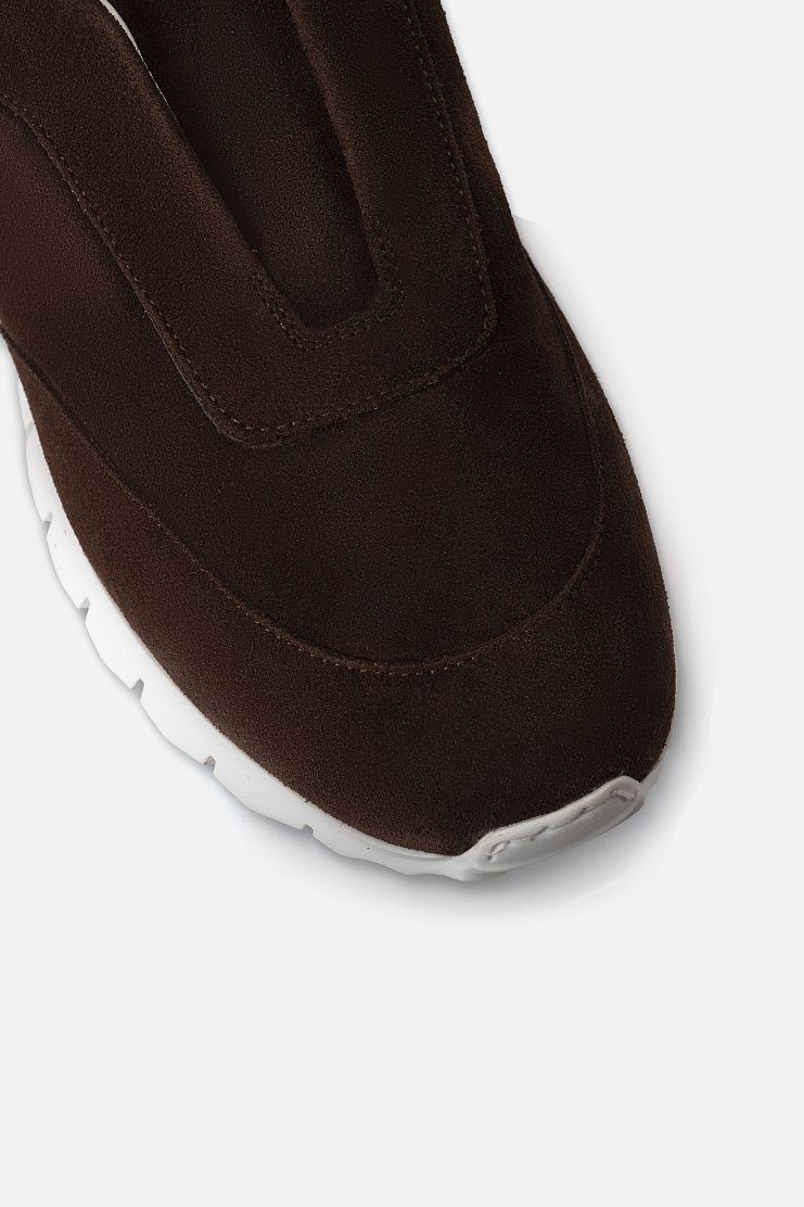 Кроссовки без шнуровки, которые комфортно садятся на стопу с любым подъемом, изготовили из мягкой замши. Модель дополнена широкой резиновой подошвой с протектором и украшена брендированной нашивкой на язычке.