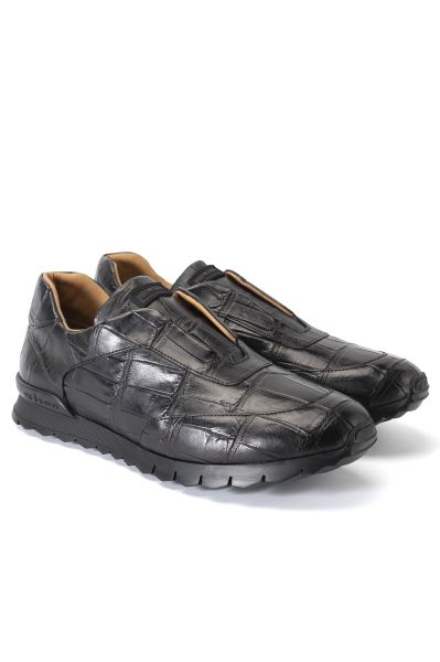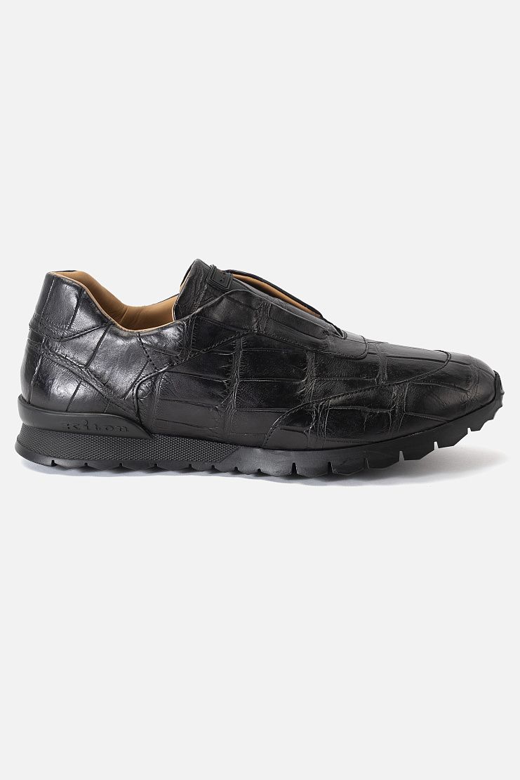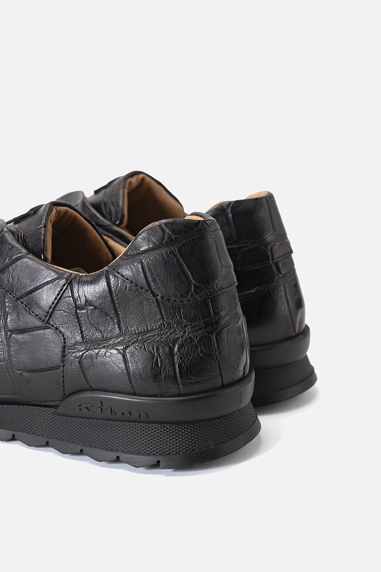 Кроссовки из фактурной крокодиловой кожи на гибкой резиновой подошве станут эффектной деталью образа. Модель с внутренней кожаной отделкой украшена фирменным логотипом на язычке.