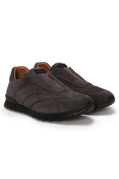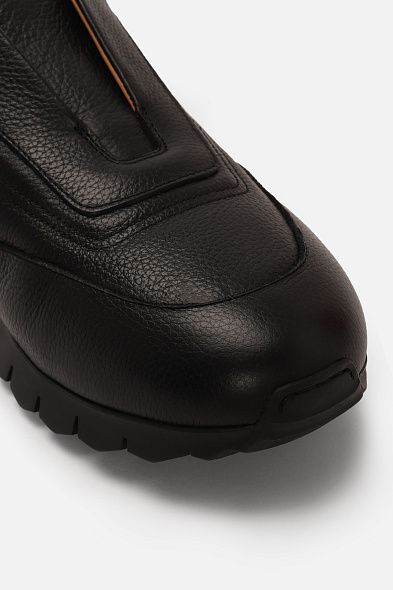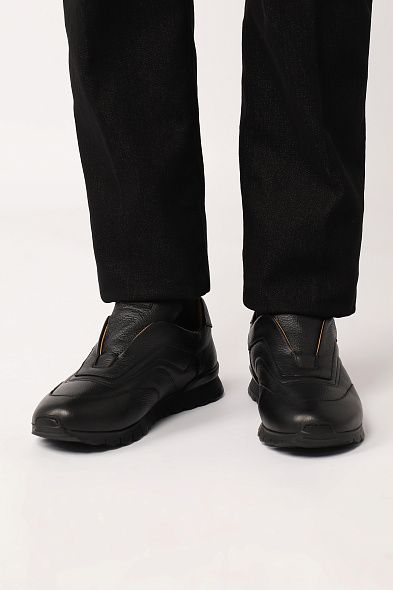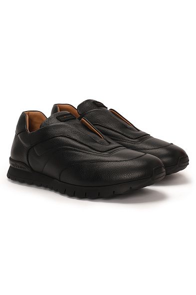 Кожаные кроссовки без шнуровки прекрасно подойдут для повседневных образов с джинсами и бомбером. Мягкий и прочный материал отполировали до блеска. Модель на гибкой подошве украшена резиновым патчем с логотипом бренда.