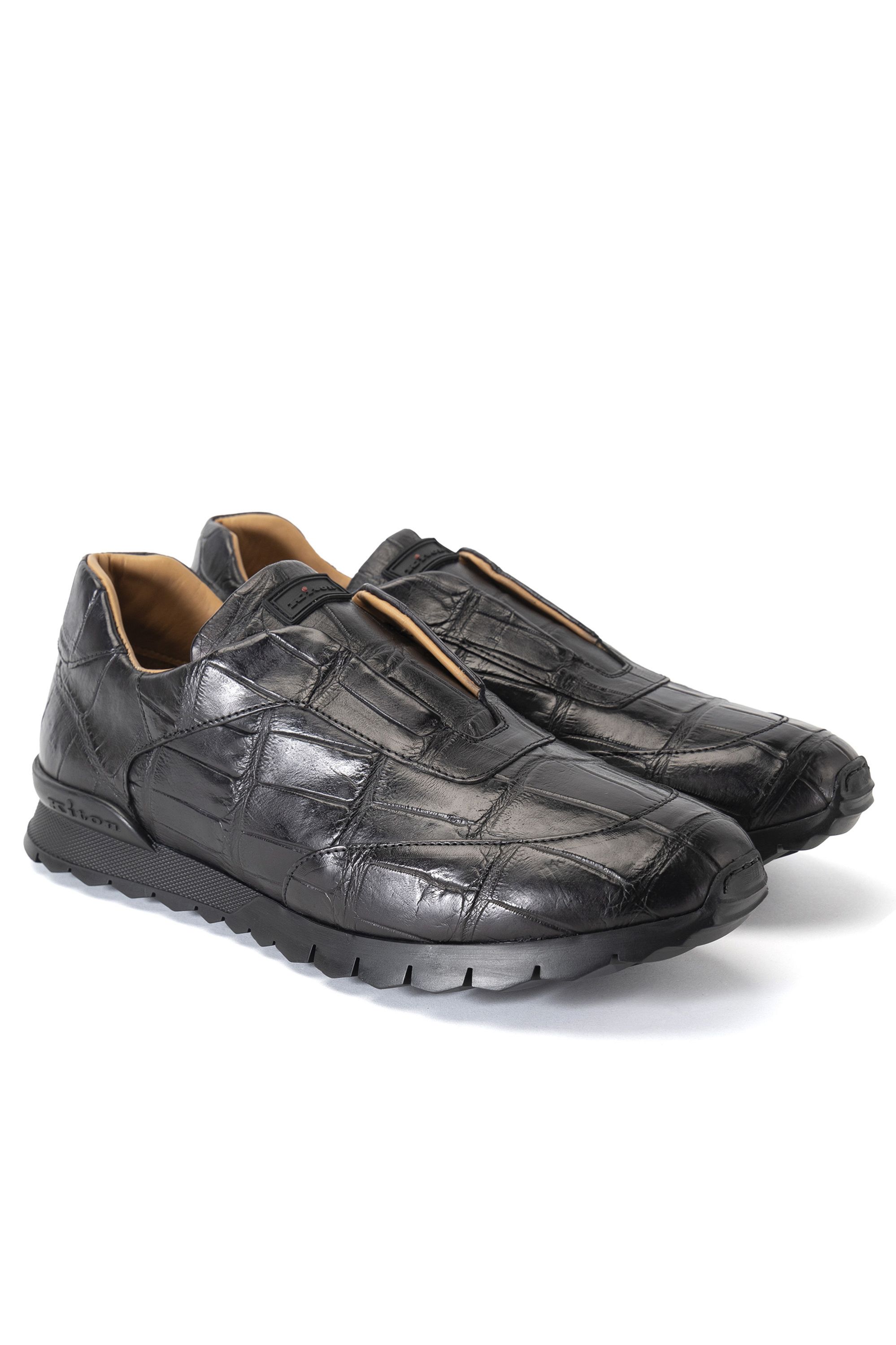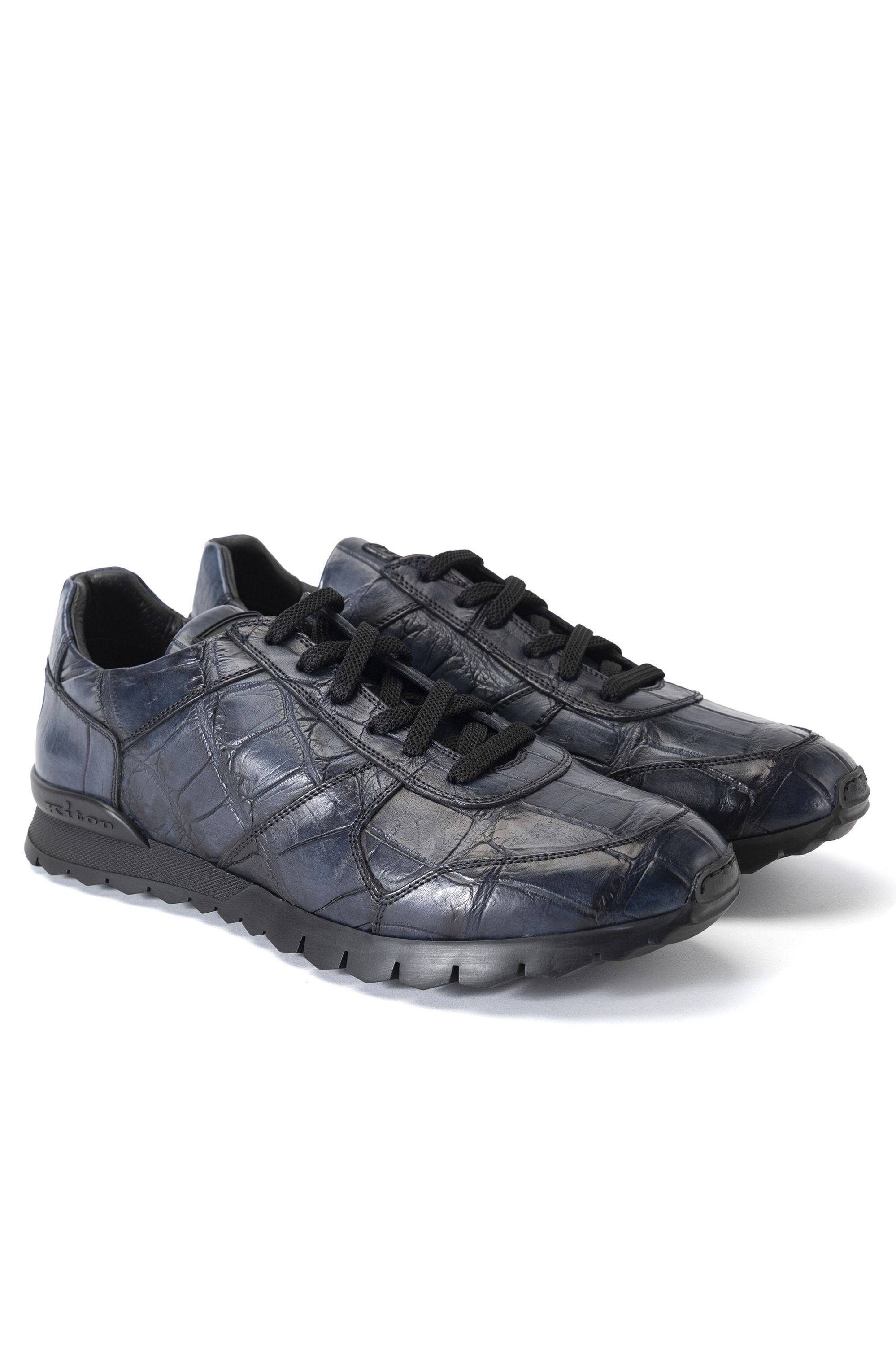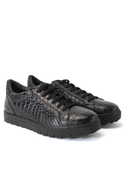 Кроссовки сшили из прочной крокодиловой кожи с уникальным природным рисунком. Модель со шнуровкой дополнена широкой резиновой подошвой с тисненым фирменным логотипом. Такая пара отлично впишется в непринужденные образы в спортивном стиле.