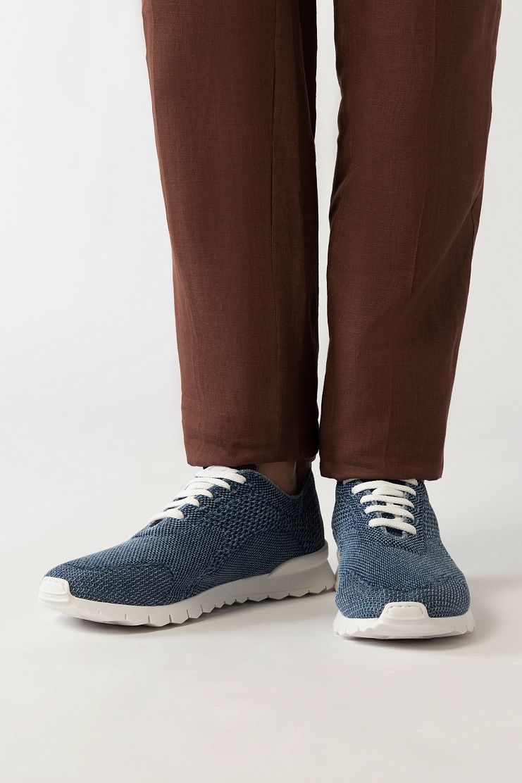 Кроссовки выполнены из плотного хлопкового трикотажа с добавлением эластичных волокон для прочности. Материал мягко облегает стопу и пропускает воздух, благодаря чему в обуви будет комфортно даже в жаркие дни. Модель дополнена гибкой пружинящей подошвой с протектором, подкладкой из кожи и вышитым логотипом на язычке.