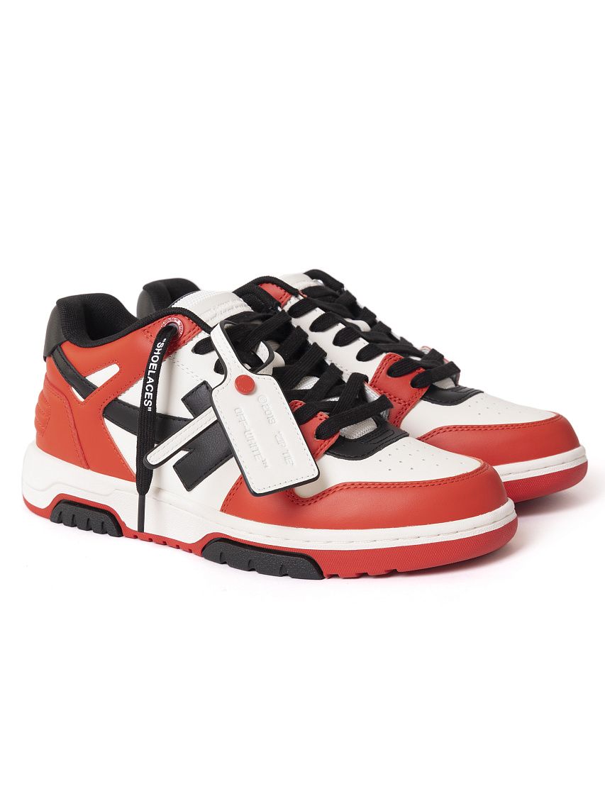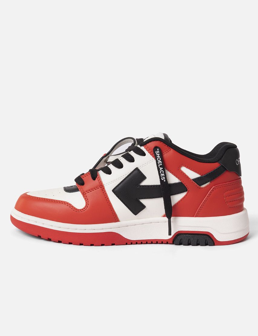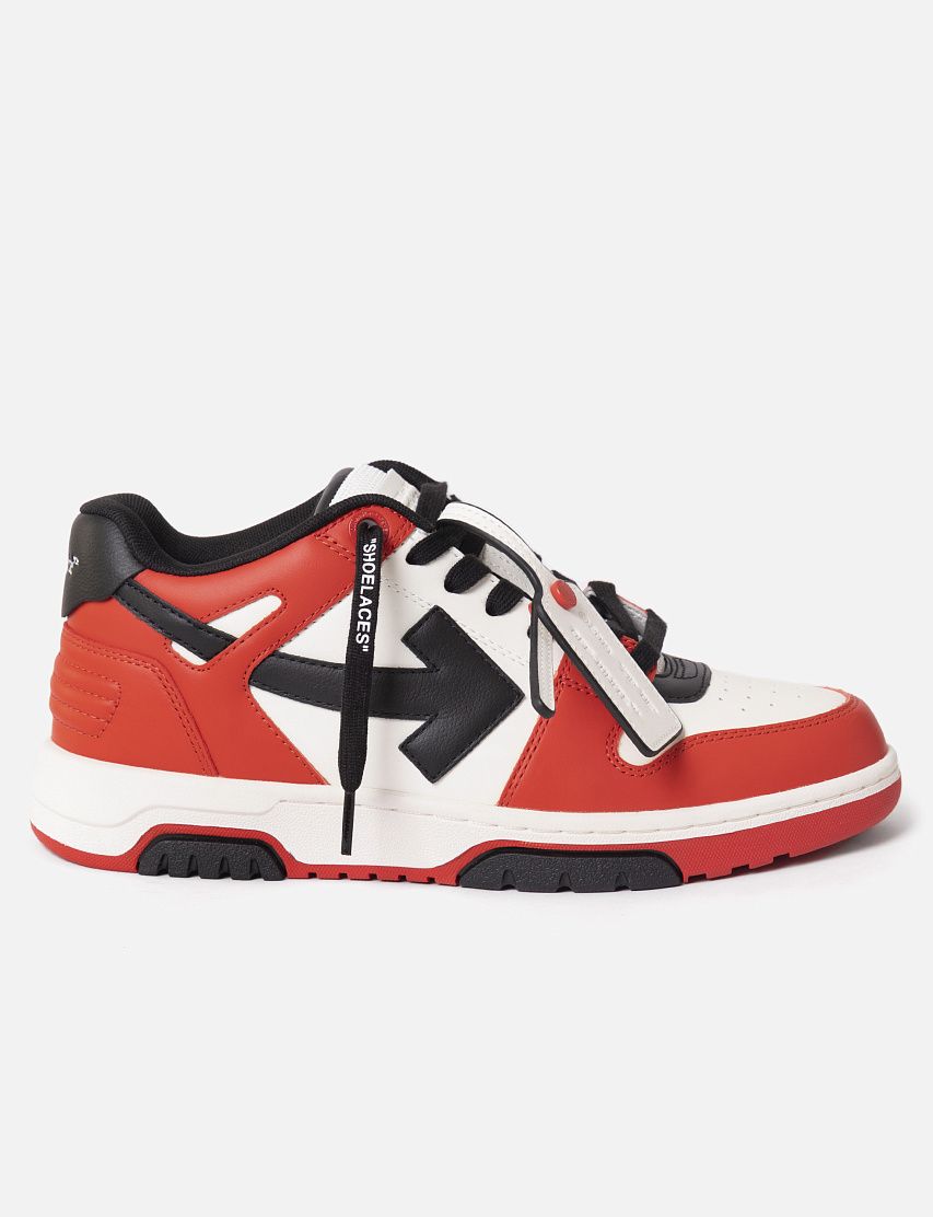Кроссовки Out Of Office, дизайн которых вдохновлен субкультурой 90-х, выполнили из гладкой кожи. Широкая резиновая подошва с протектором обеспечивает плотное сцепление с поверхностями. Модель украшена контрастными фирменными стрелами и съемным кожаным ярлыком Zip Tie.