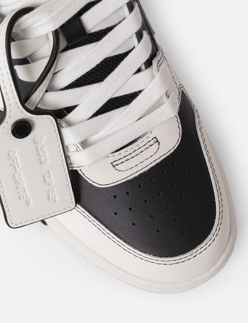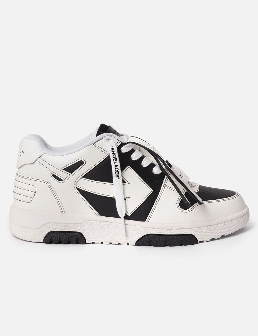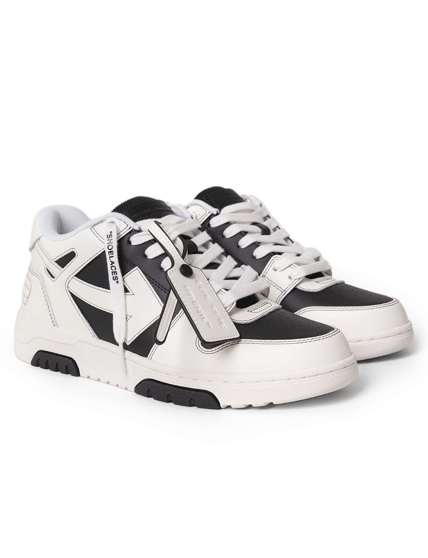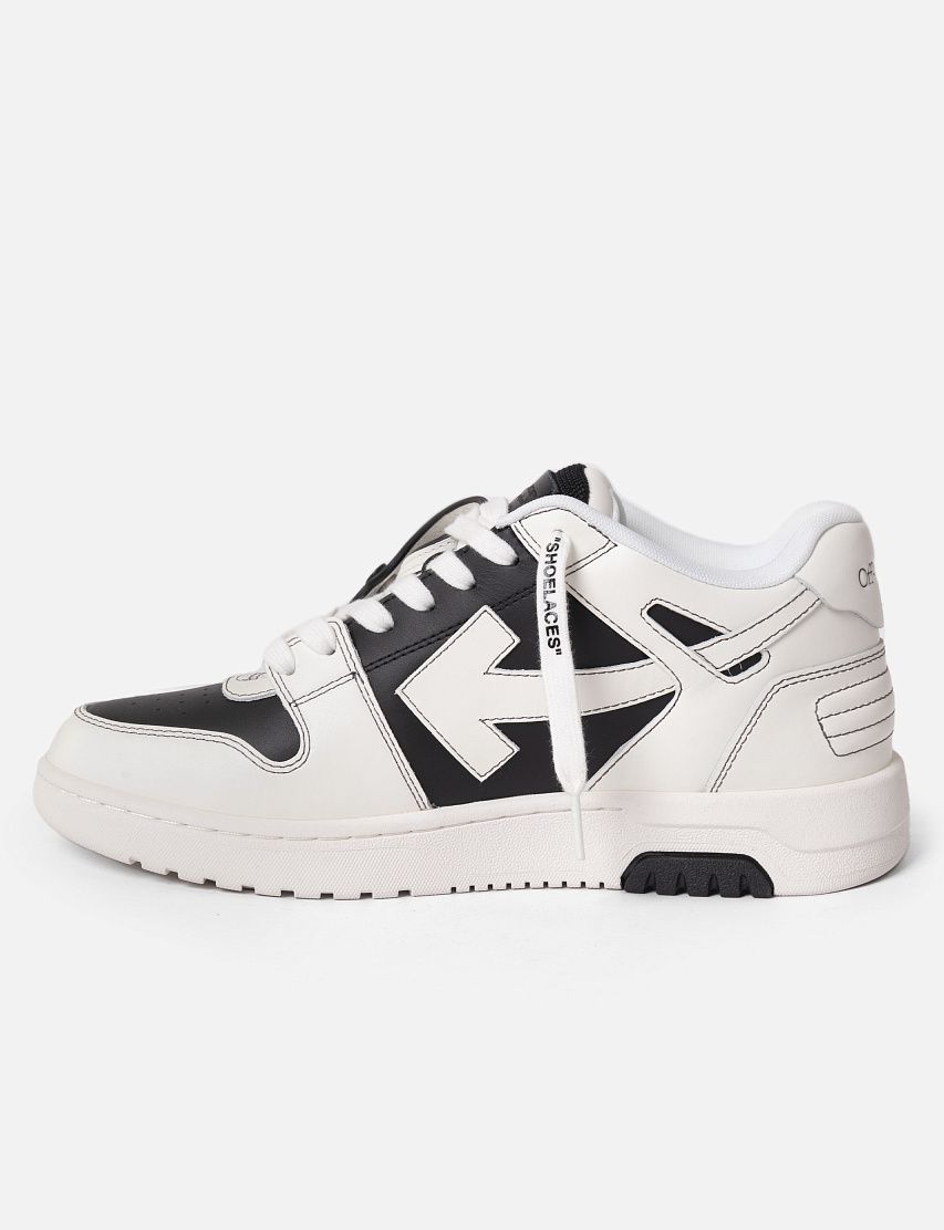 Кроссовки на широкой резиновой подошве выполнили из гладкой и прочной телячьей кожи. Модель c перфорацией на закругленном мысе украшена фирменными стрелами на боковых панелях. На шнуровке разместили съемный кожаный брелок Zip Tie.