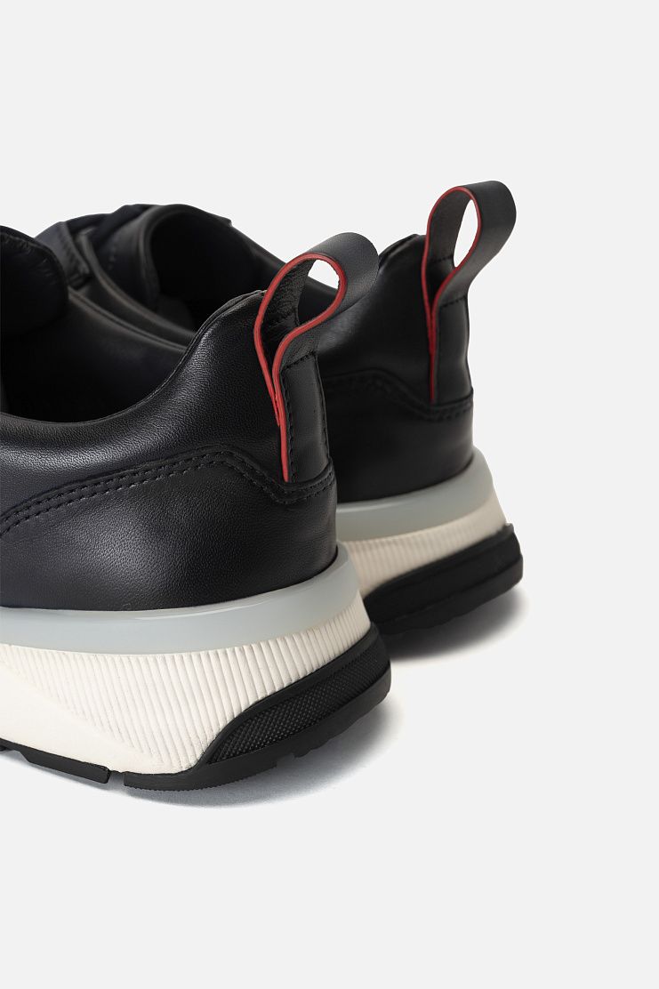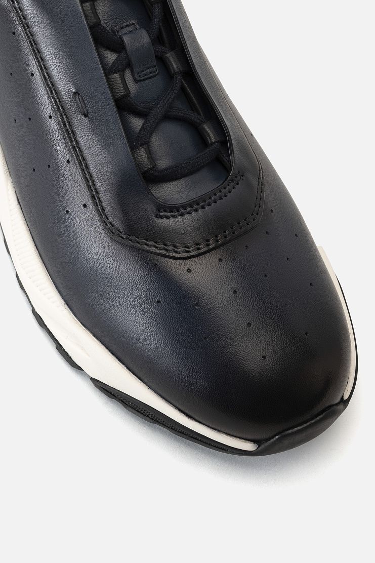 Кроссовки сшили из гладкой перфорированной кожи, окрашенной в технике velatura для создания эффекта градиента. Модель на широкой подошве дополнили шнуровкой и петлей на заднике.