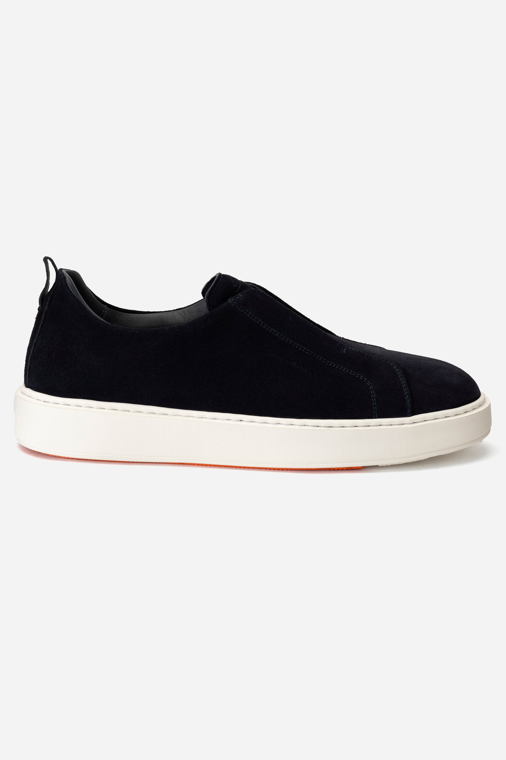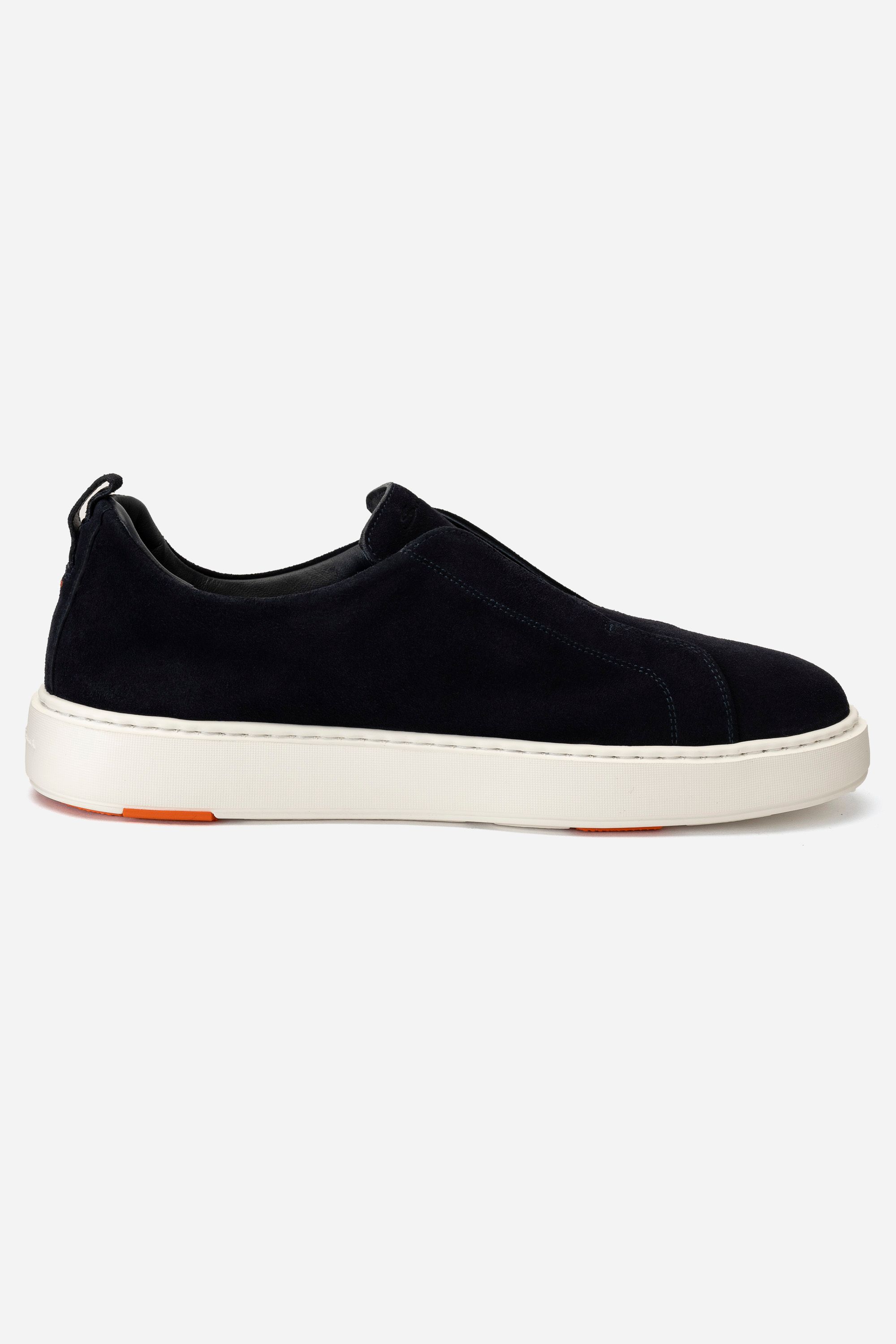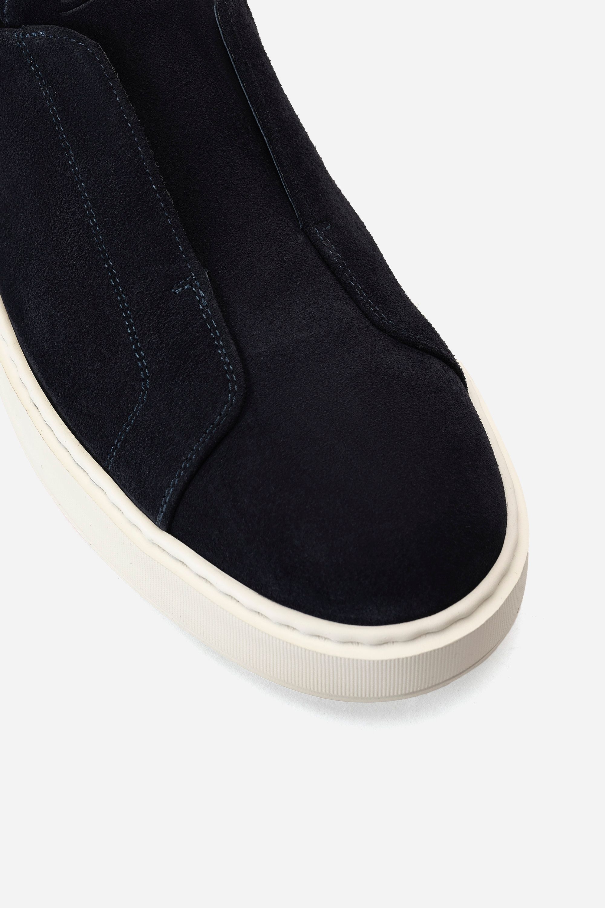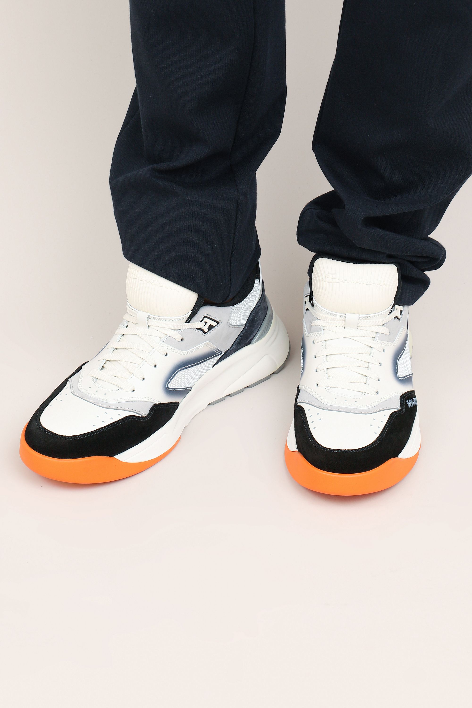 Кроссовки на легкой амортизирующей подошве выполнили из гладкого полиамида и прочной телячьей кожи, окрашенной в технике velatura. Модель с микроперфорацией дополнили эластичными трикотажным манжетом и петлей на заднике.