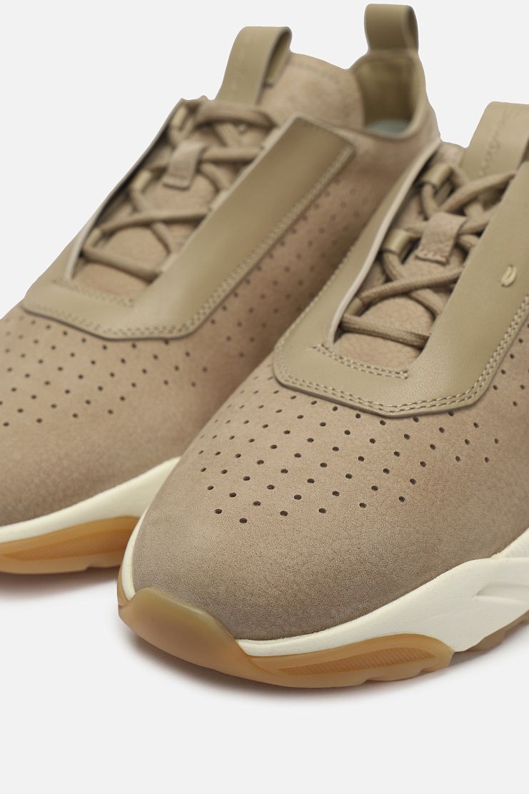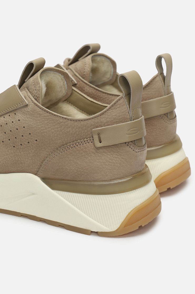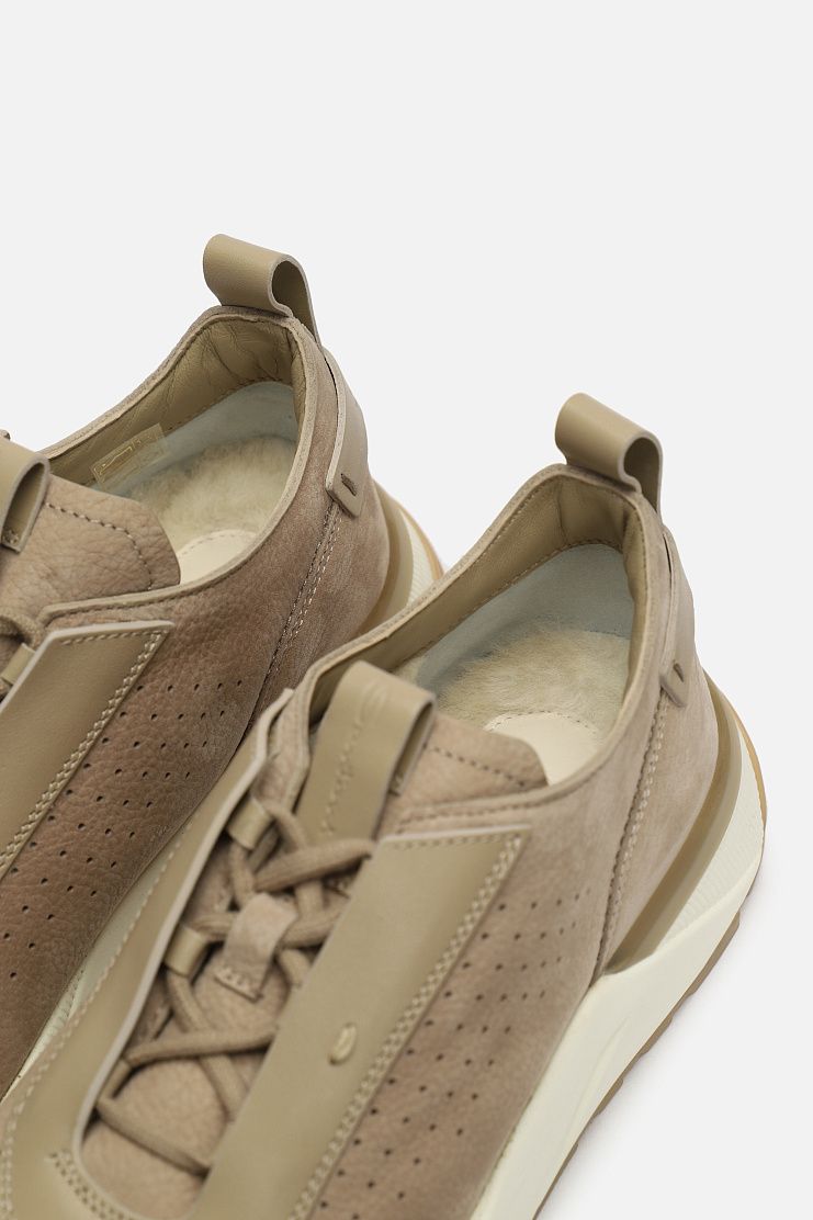 Кроссовки из нубука и кожи с зауженным носом и беговой массивной подошвой. Благодаря меховой подкладке модель прекрасно подойдет для холодной погоды.