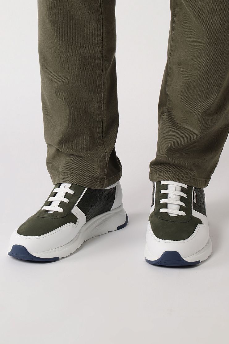 Кроссовки выполнены из сочетания кожи и текстиля и украшены надписью Zilli на язычке. Модель на кожаной подкладке.